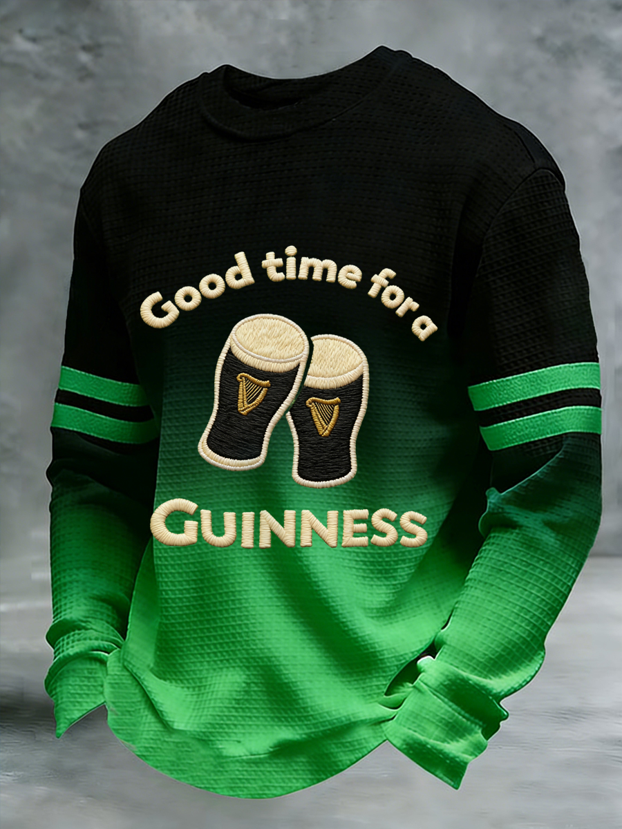 Men's St. Patrick's Day Good Time For A Guinness Casual Waffle Long Sleeve Sweatshirt