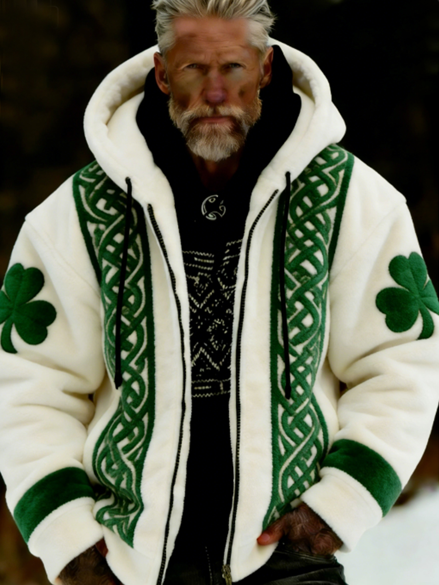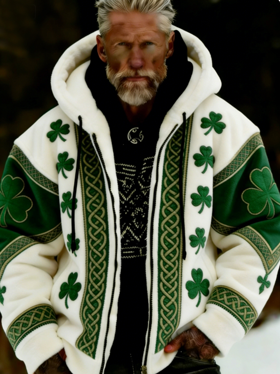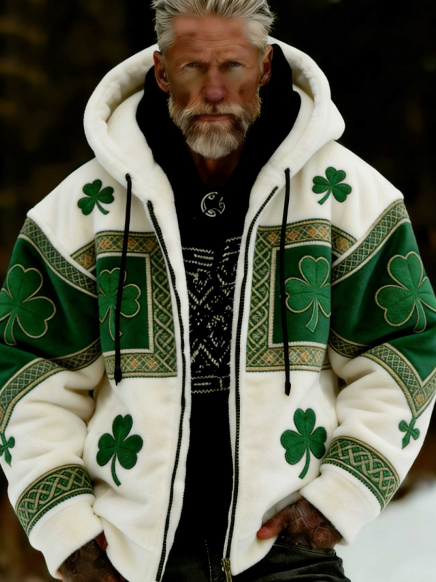Men's St Patrick's Day Plush Cozy Warm Zipped Hooded Jacket