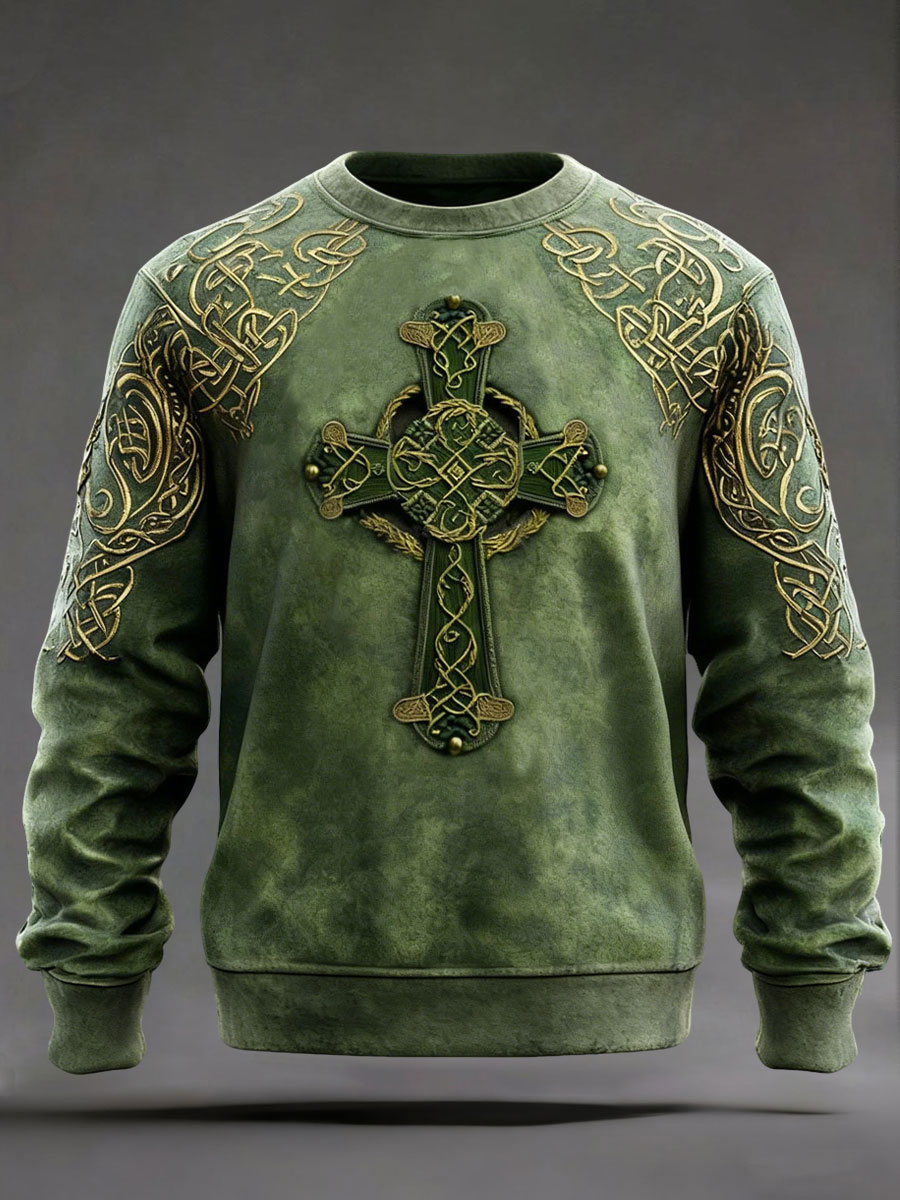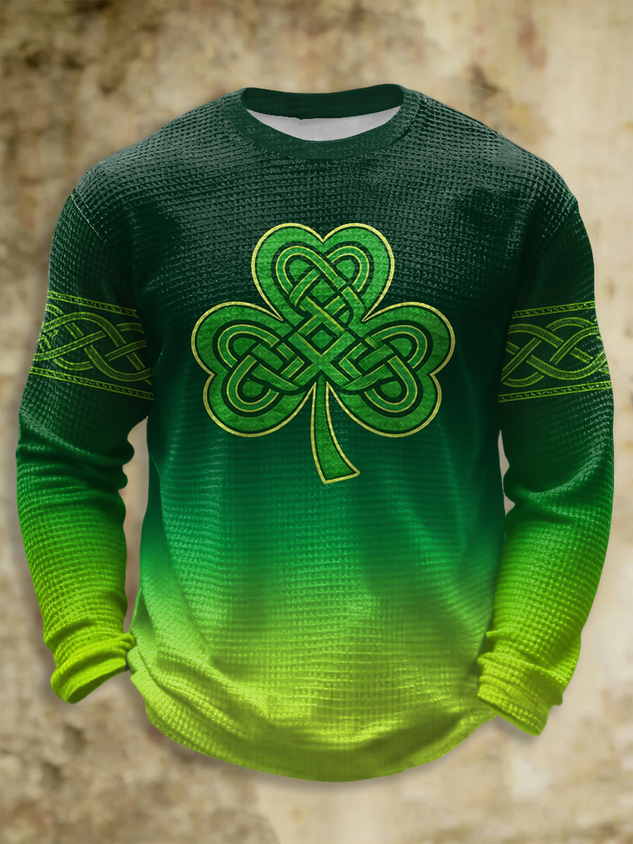 Men's St Patrick's Day Shamrock Celtic Knot Cross Print Waffle Sweatshirt
