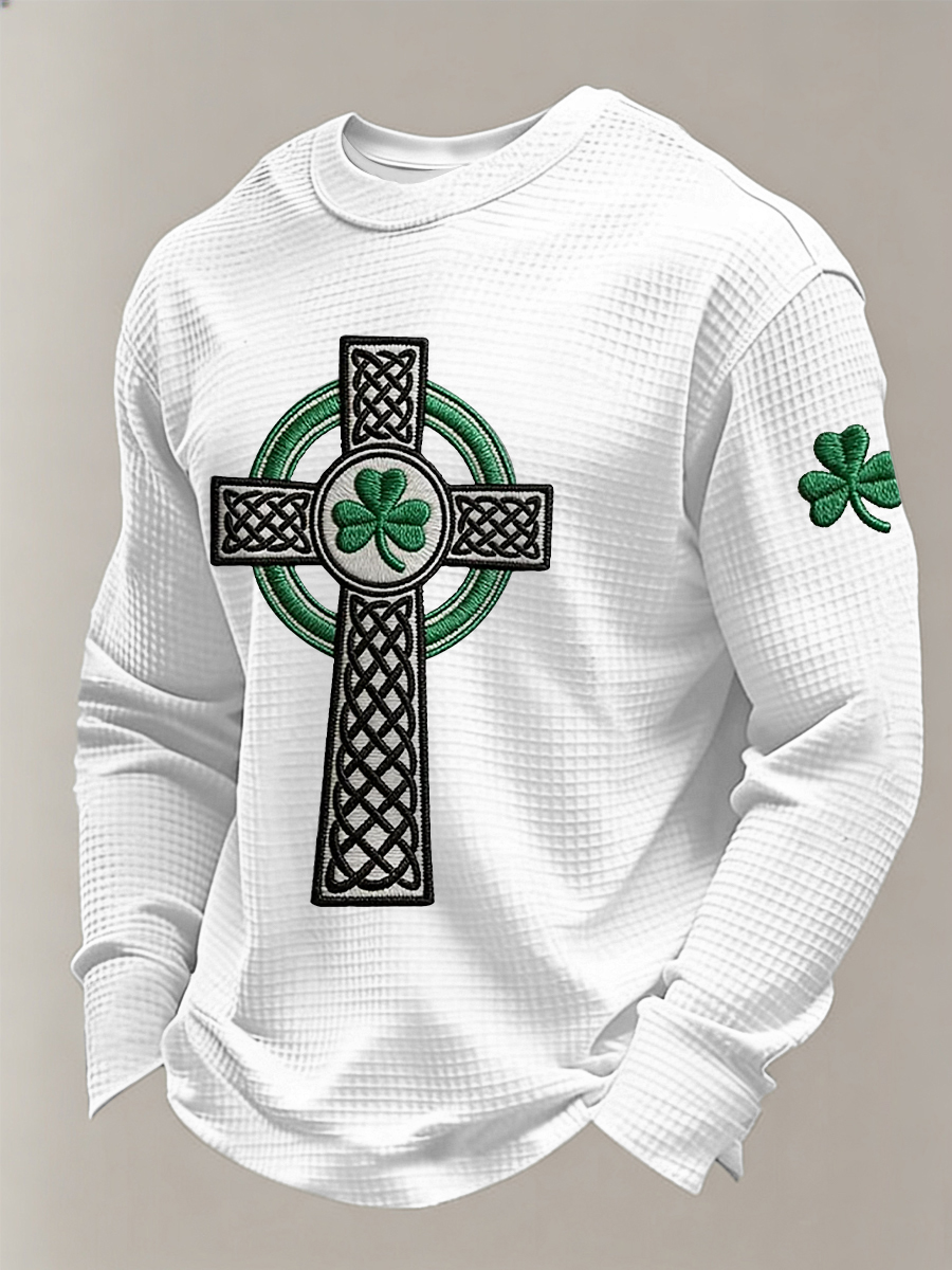 Men's St. Patrick's Day Shamrock Cross Print Waffle Knit Sweatshirt