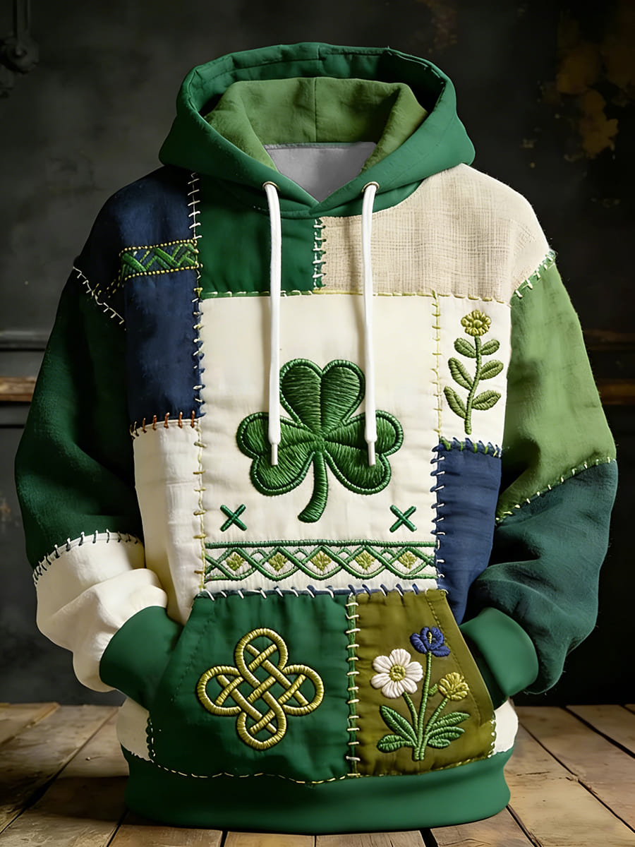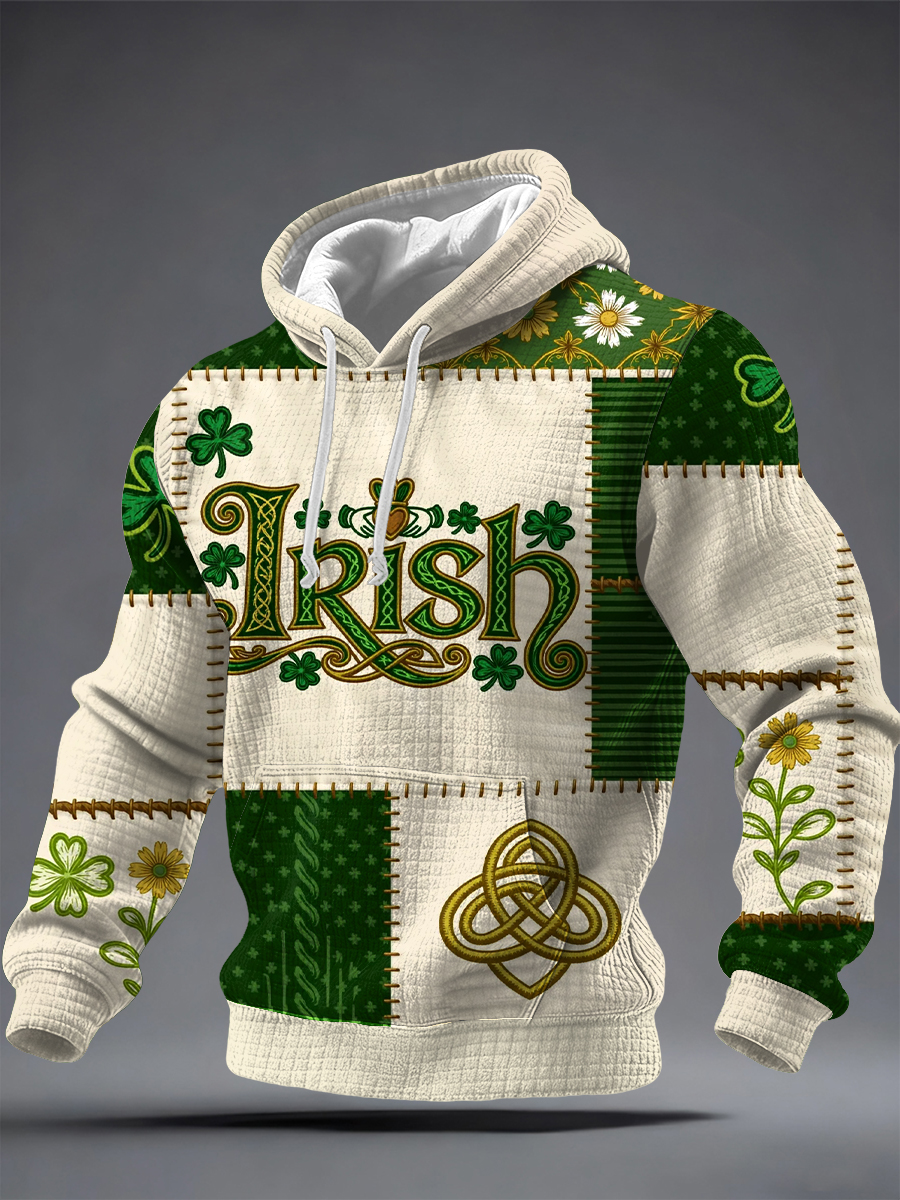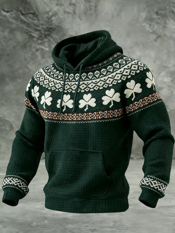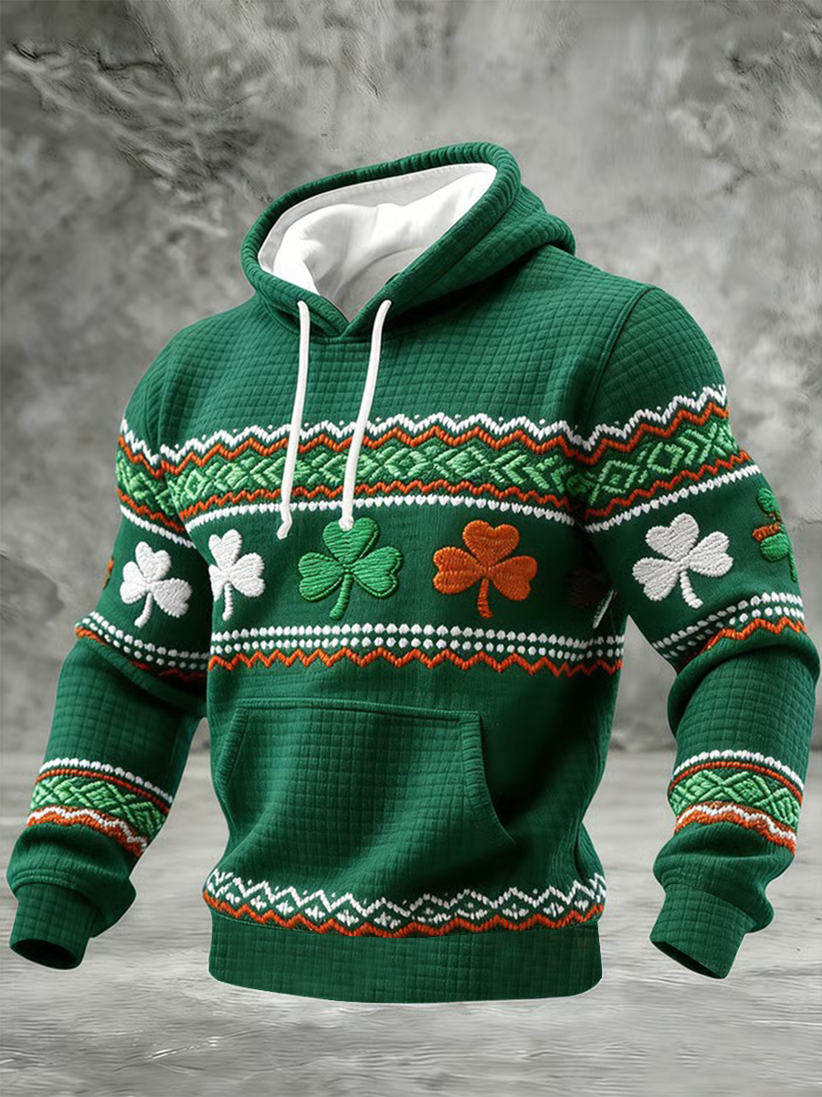 Men's Casual St Patrick’s Shamrock Hoodie with Pockets