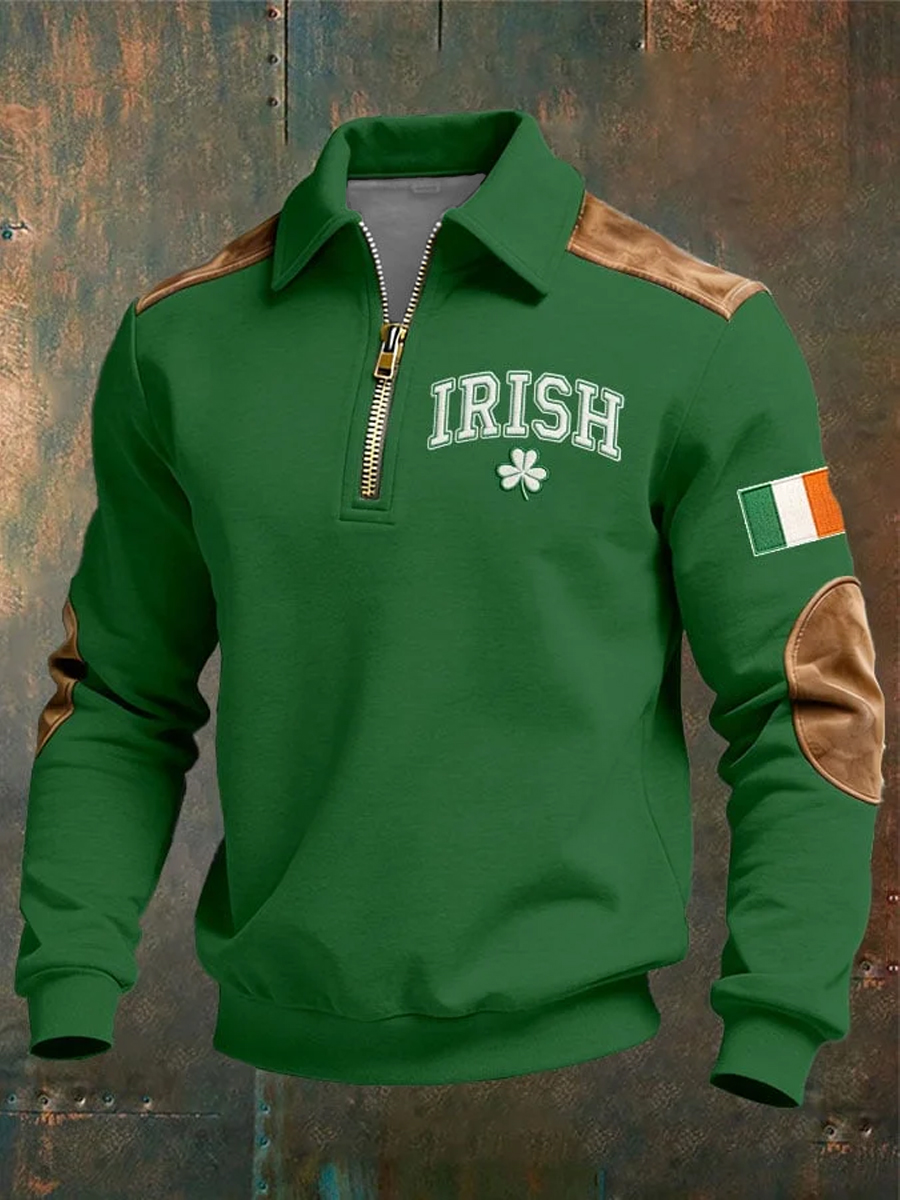 Men's Funny Let The Shenanigans Begin St Patrick's Day Shamrock Print Casual Zipper Pullover