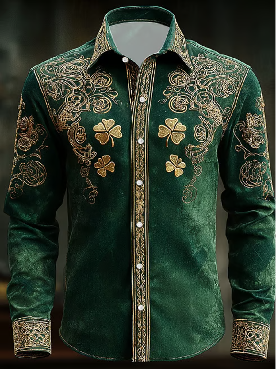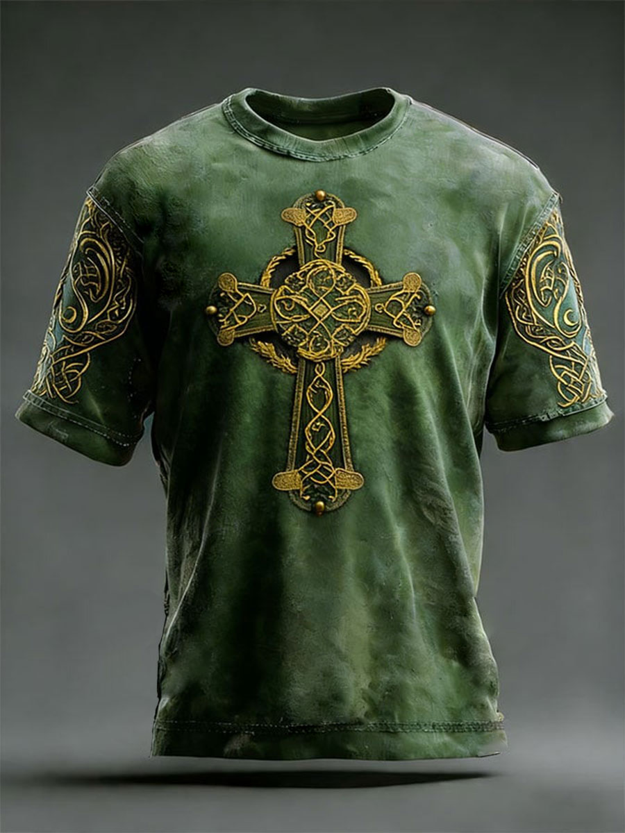 Men's St. Patrick's Day Celtic Cross Intricate Floral Shirt