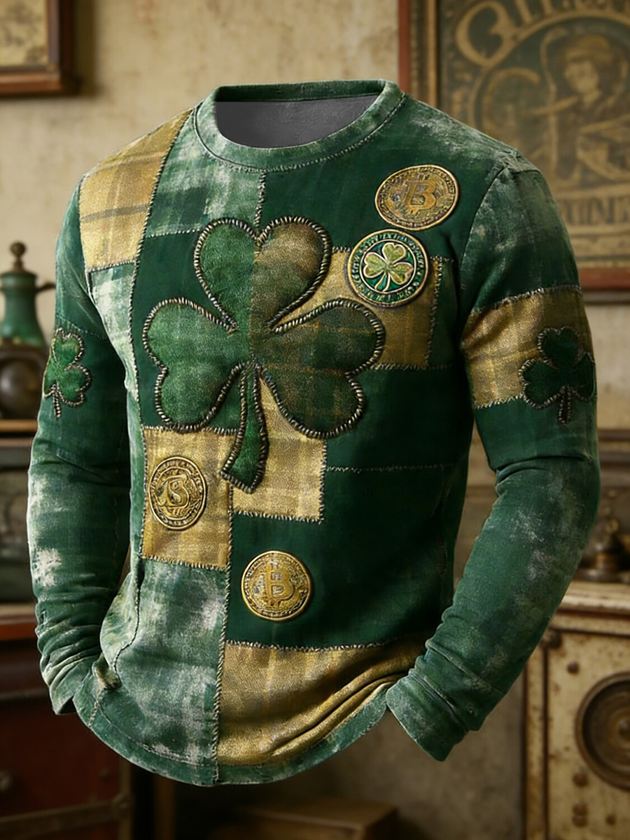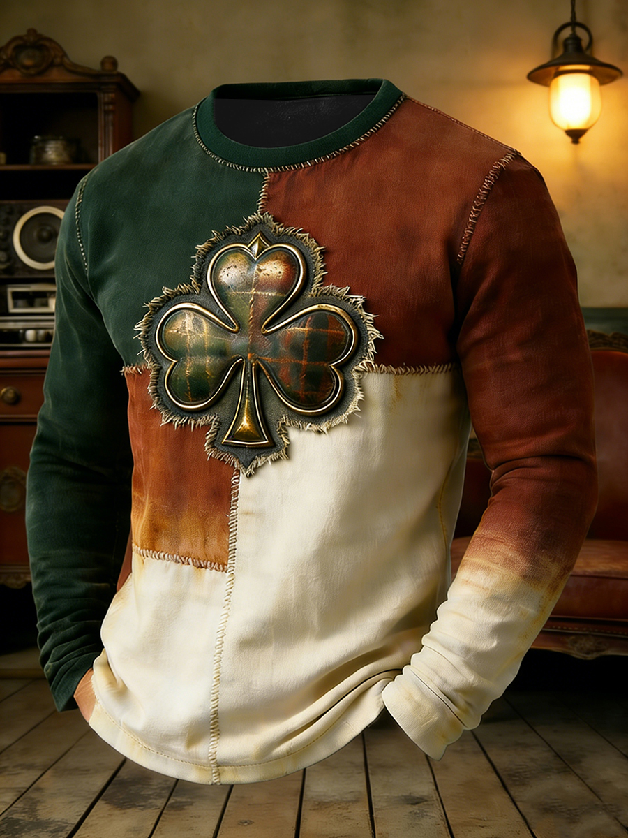 Men's St.Patrick's Day long sleeve round neck T-shirt