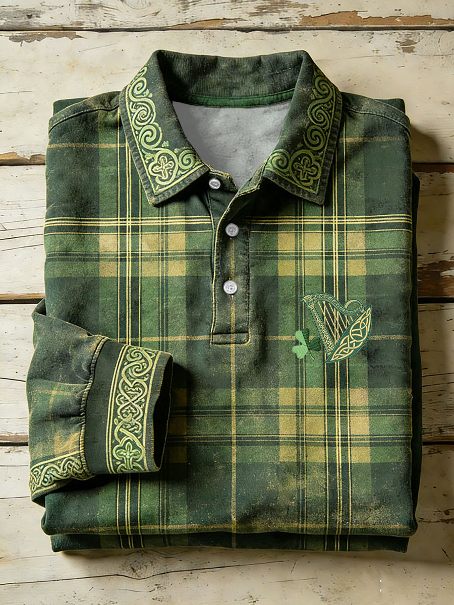 Men's St. Patrick's Day Shamrock Art Checkered Cotton Hoodie