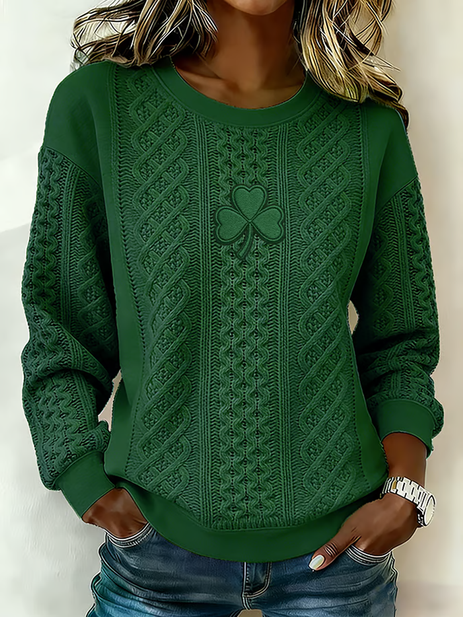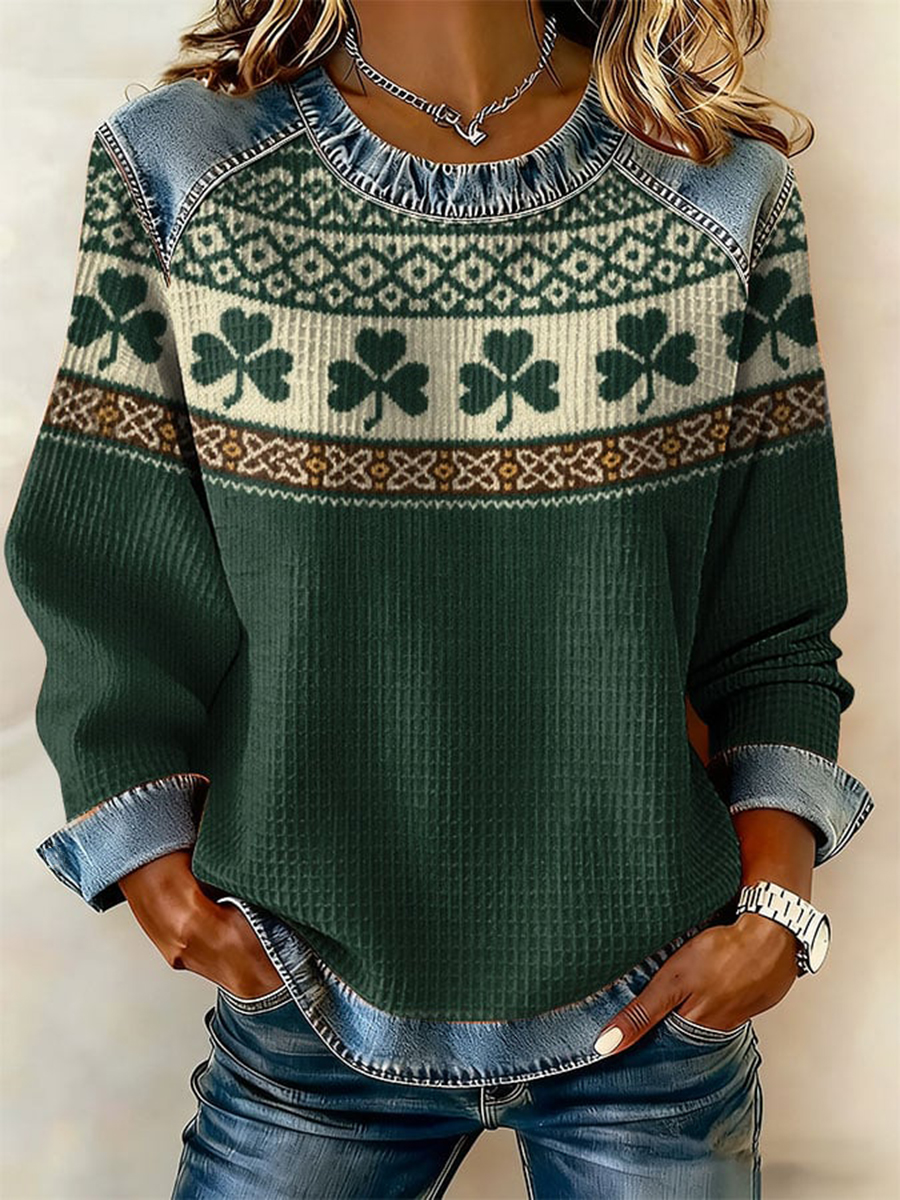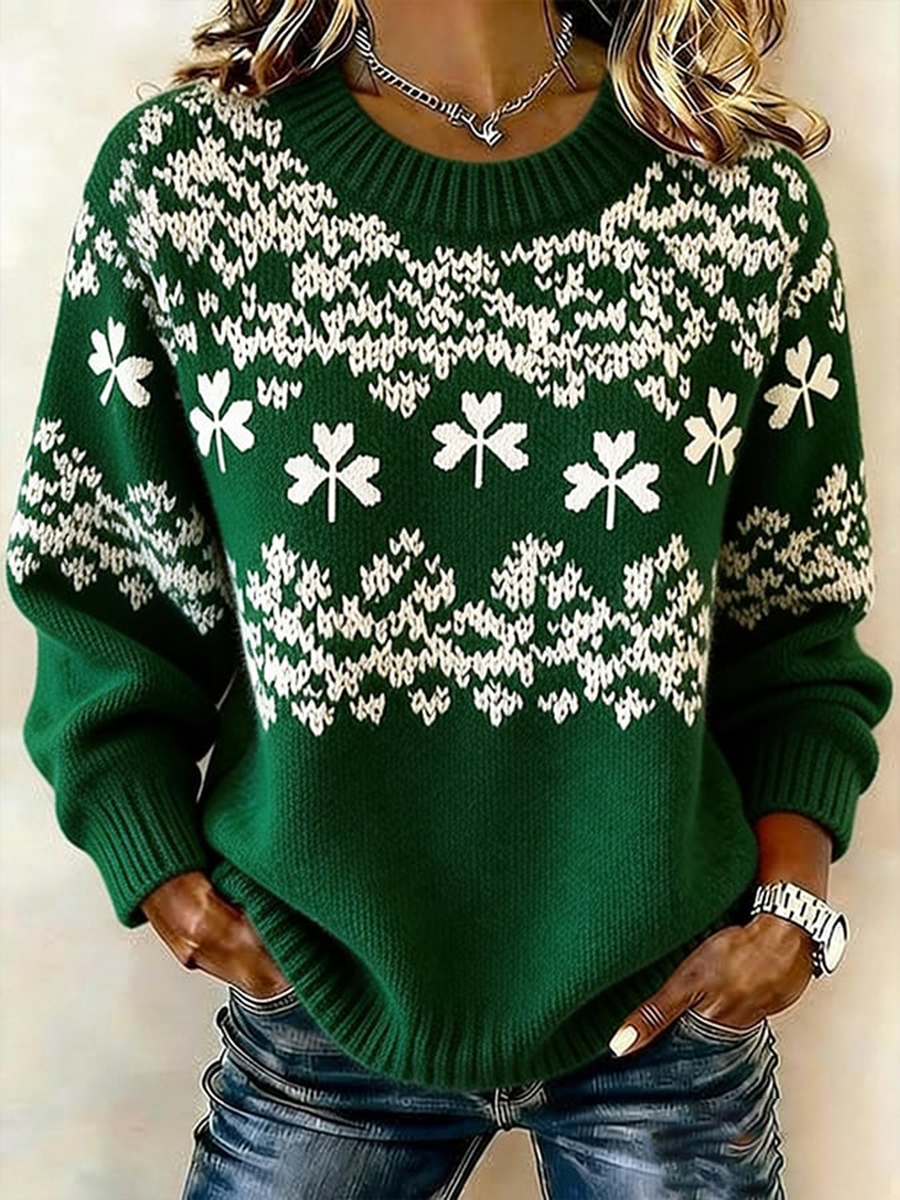 Women'S Casual St. Patrick's Day Shamrock Printed Sweater