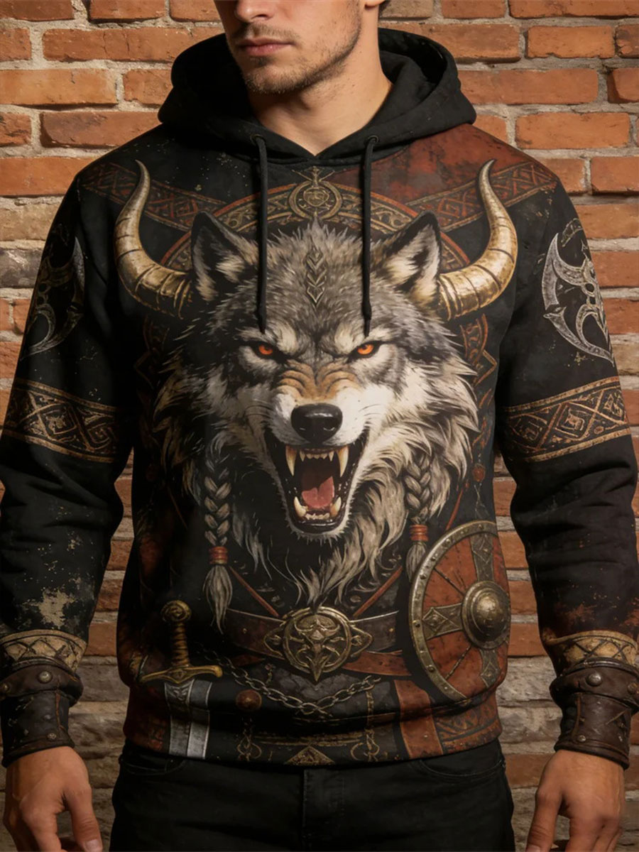 Men's Viking Animal Print Casual Hoodie