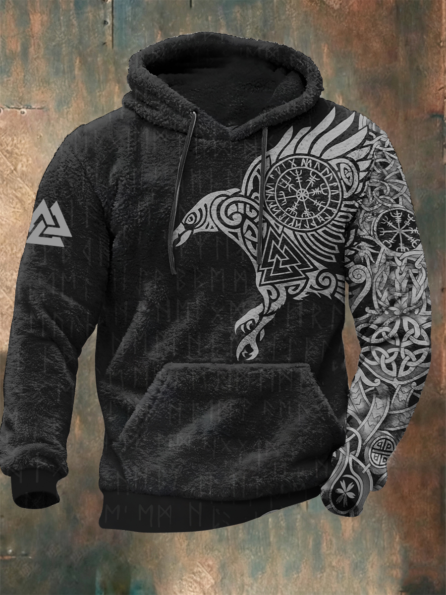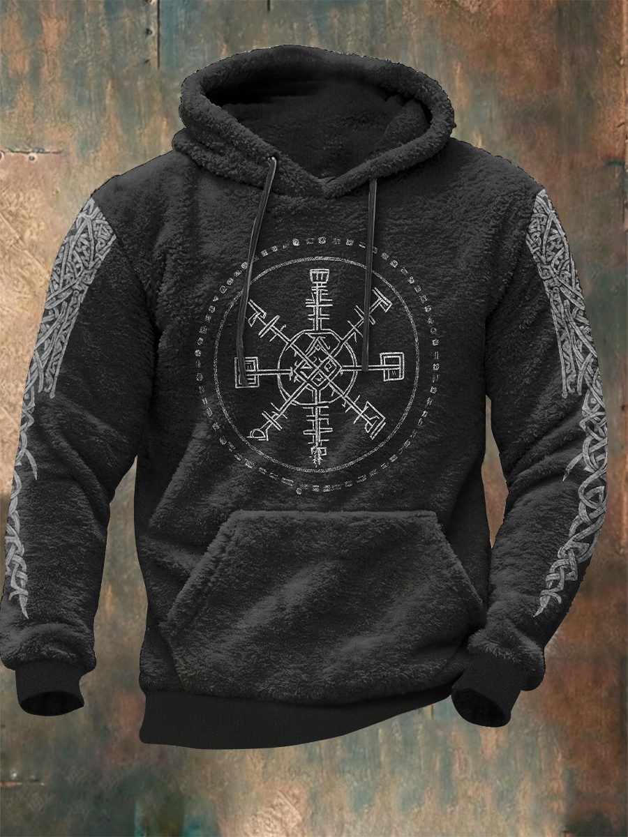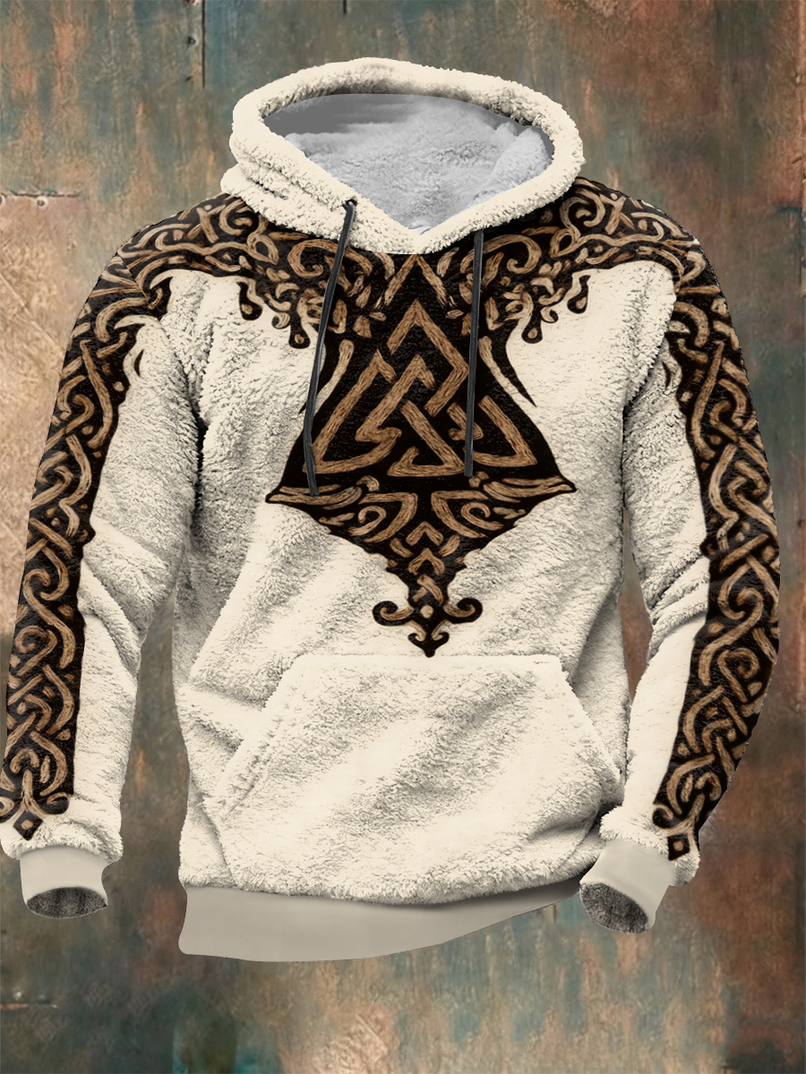 Men's Viking Vintage Wolf Celtic Flannel Warm Hoodie