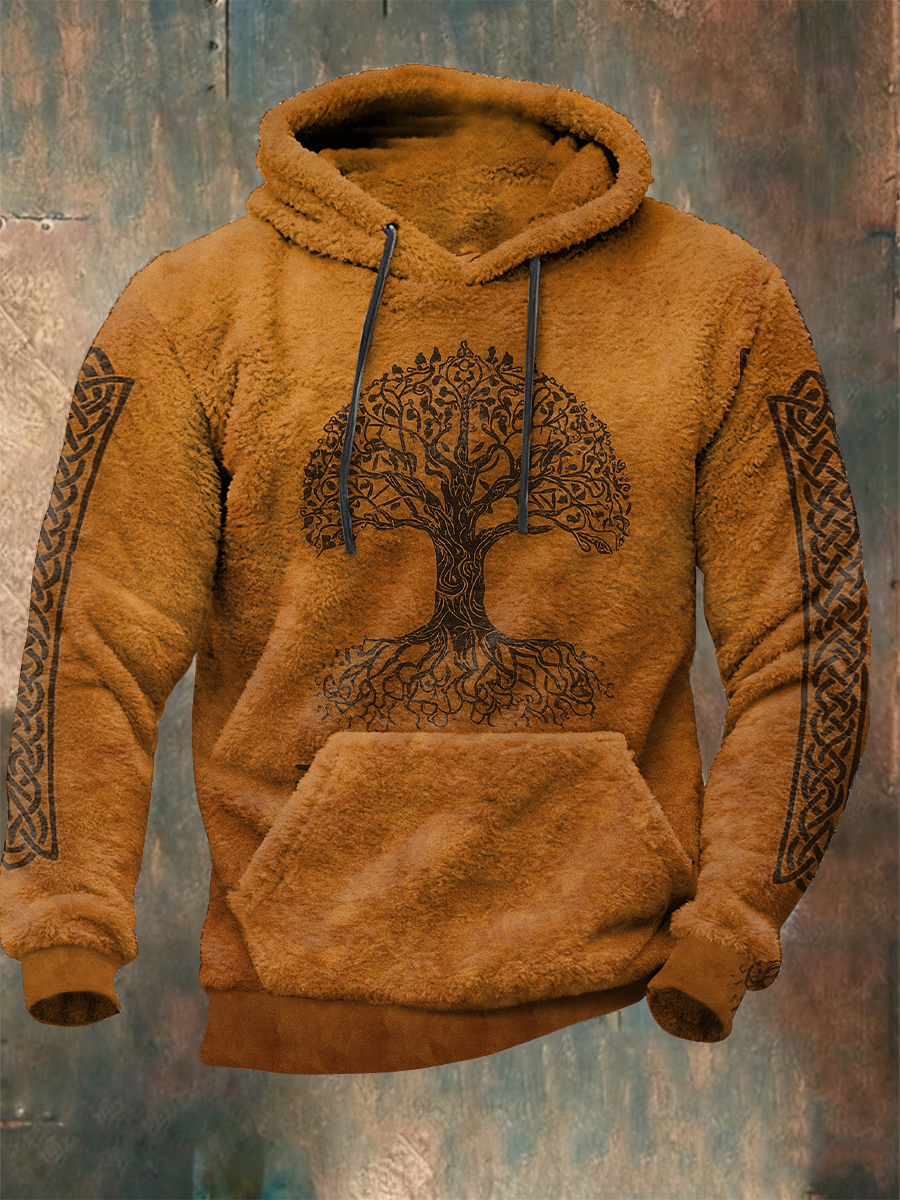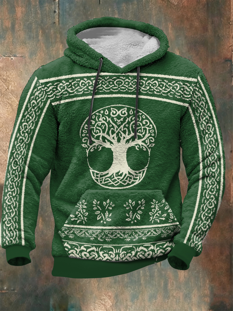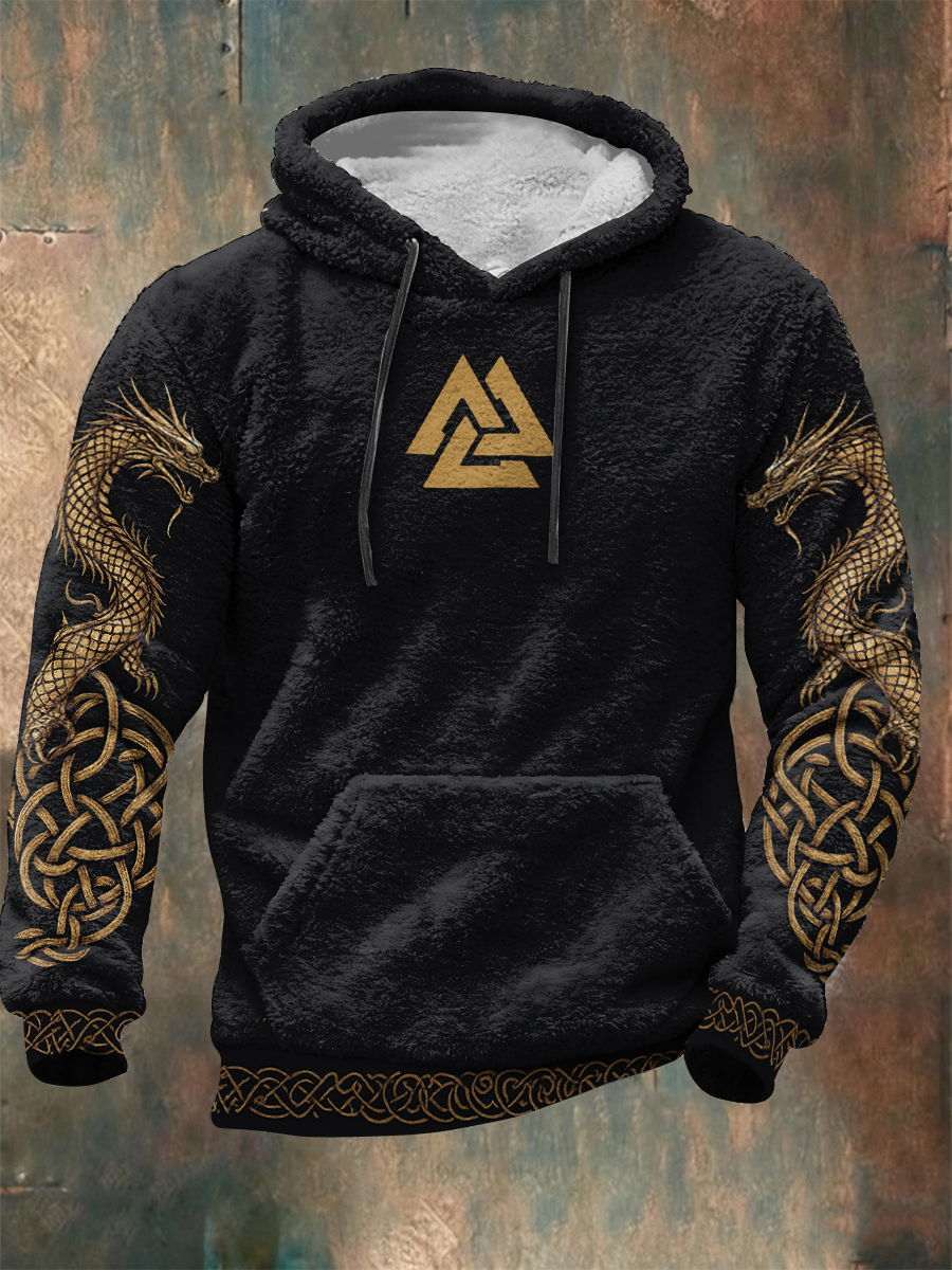 Men's Viking Vintage Wolf Celtic Flannel Warm Hoodie