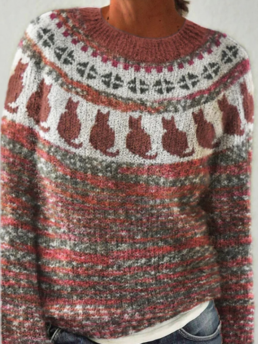 Women's Icelandic Sweater Crew Neck Loose Pullover