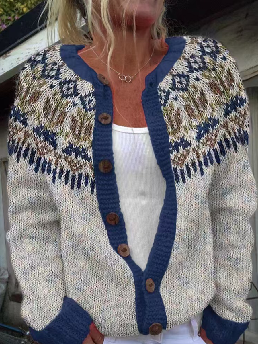 Men's Vintage Contrast Color Cozy Knit Cardigan