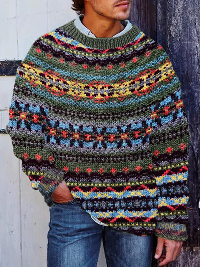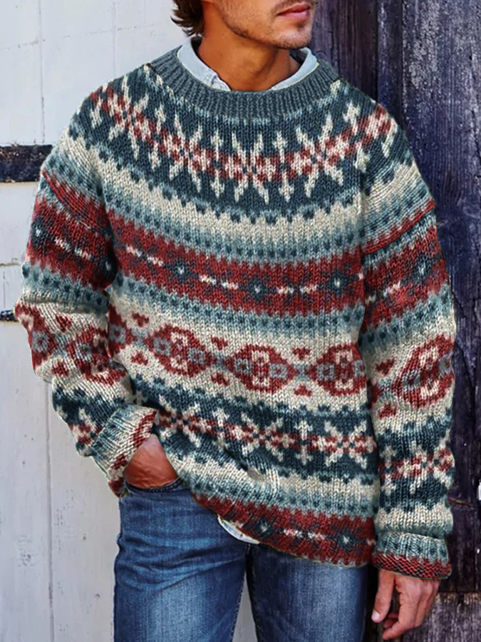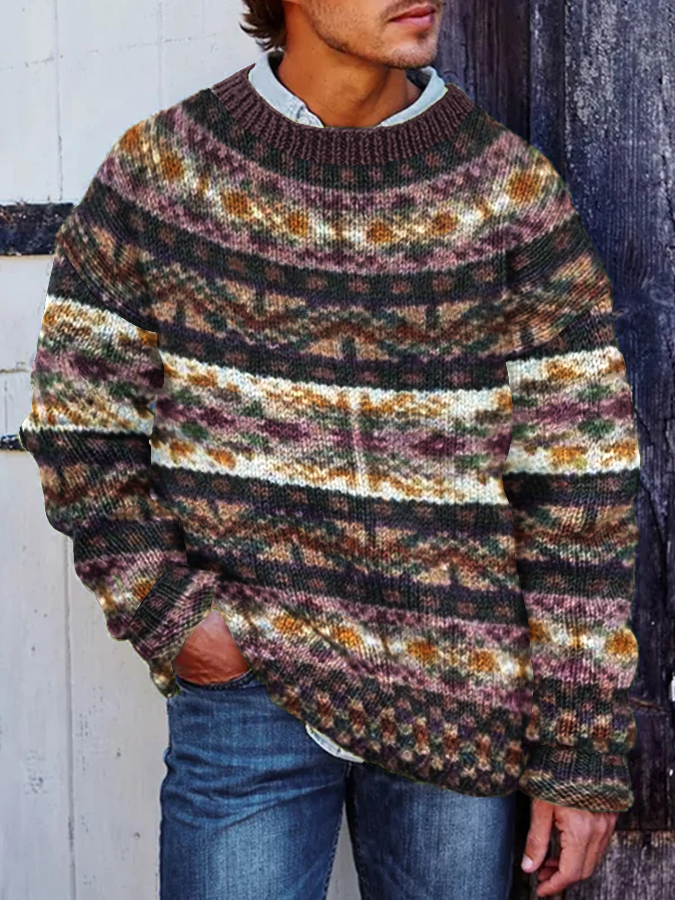 Men's Vintage Contrast Color Cozy Knit Sweater