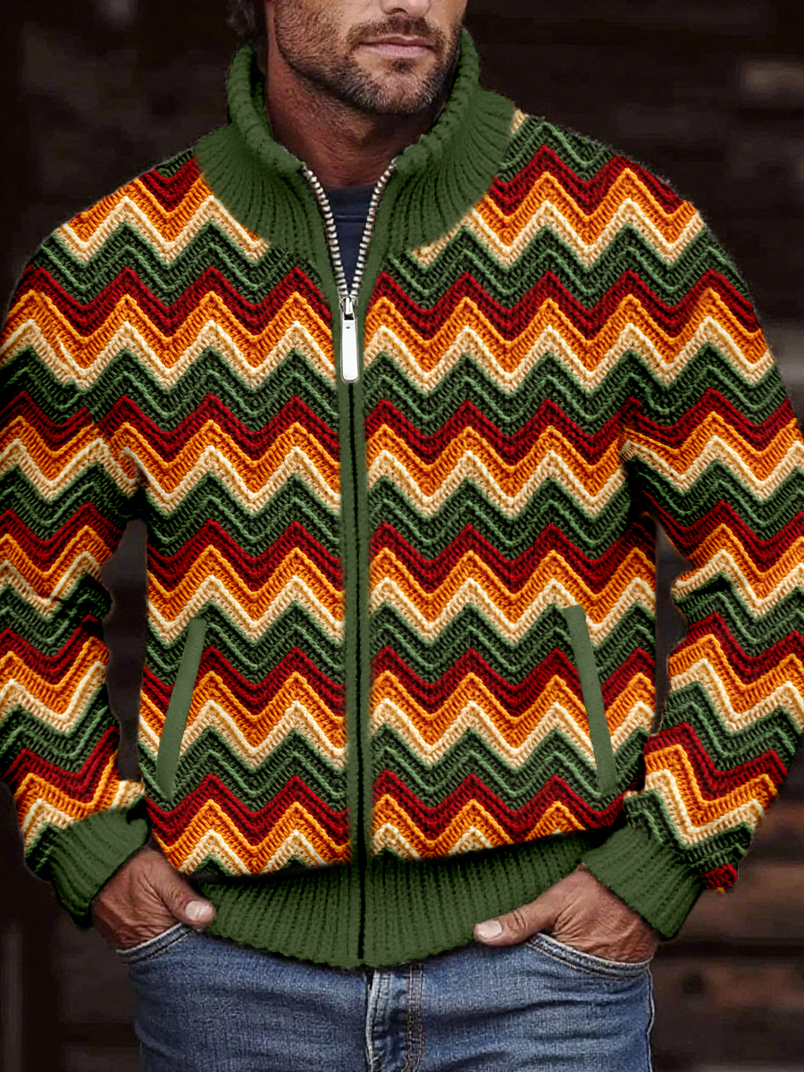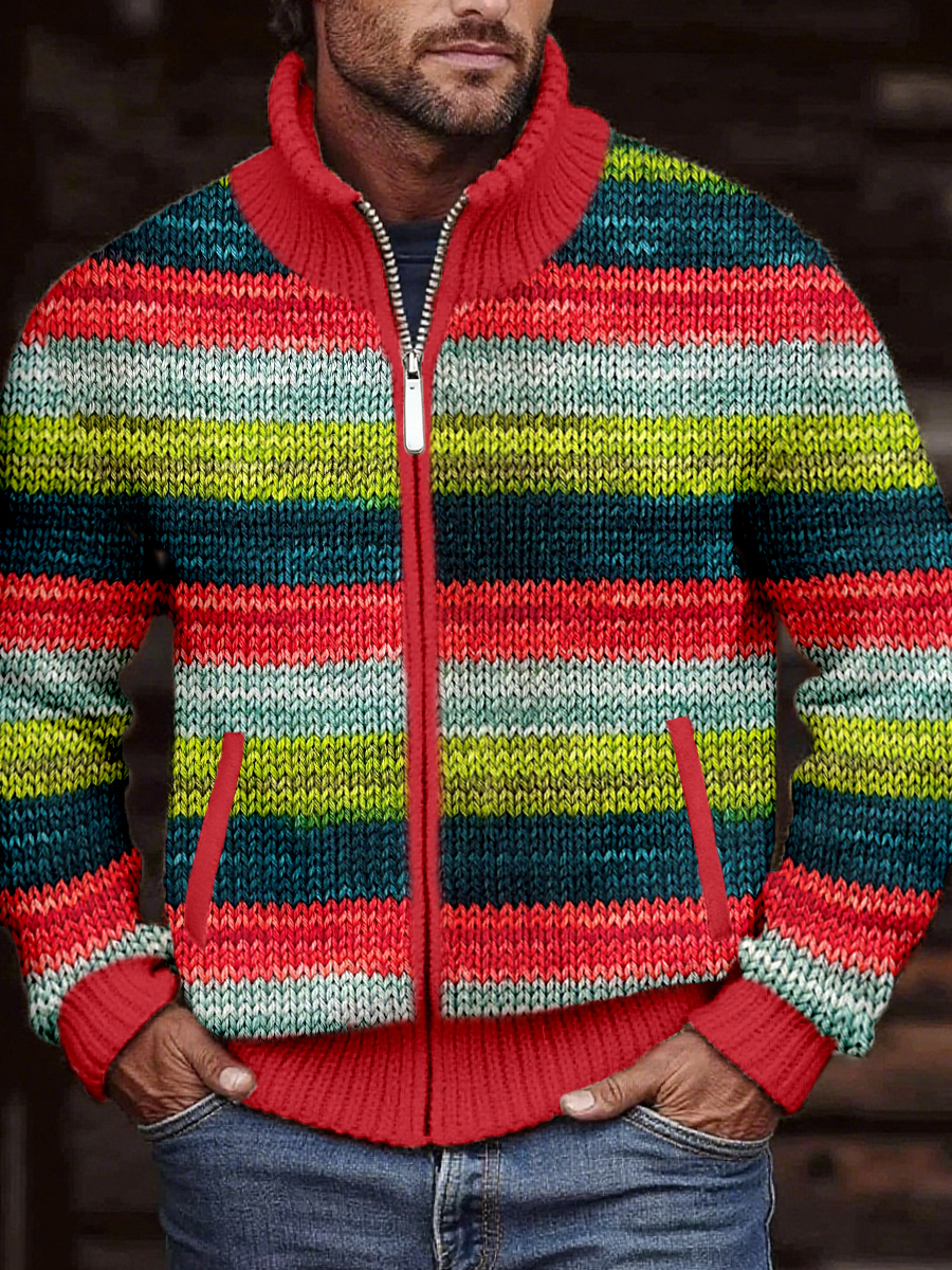 Men's Vintage Contrast Color Cozy Knit Cardigan