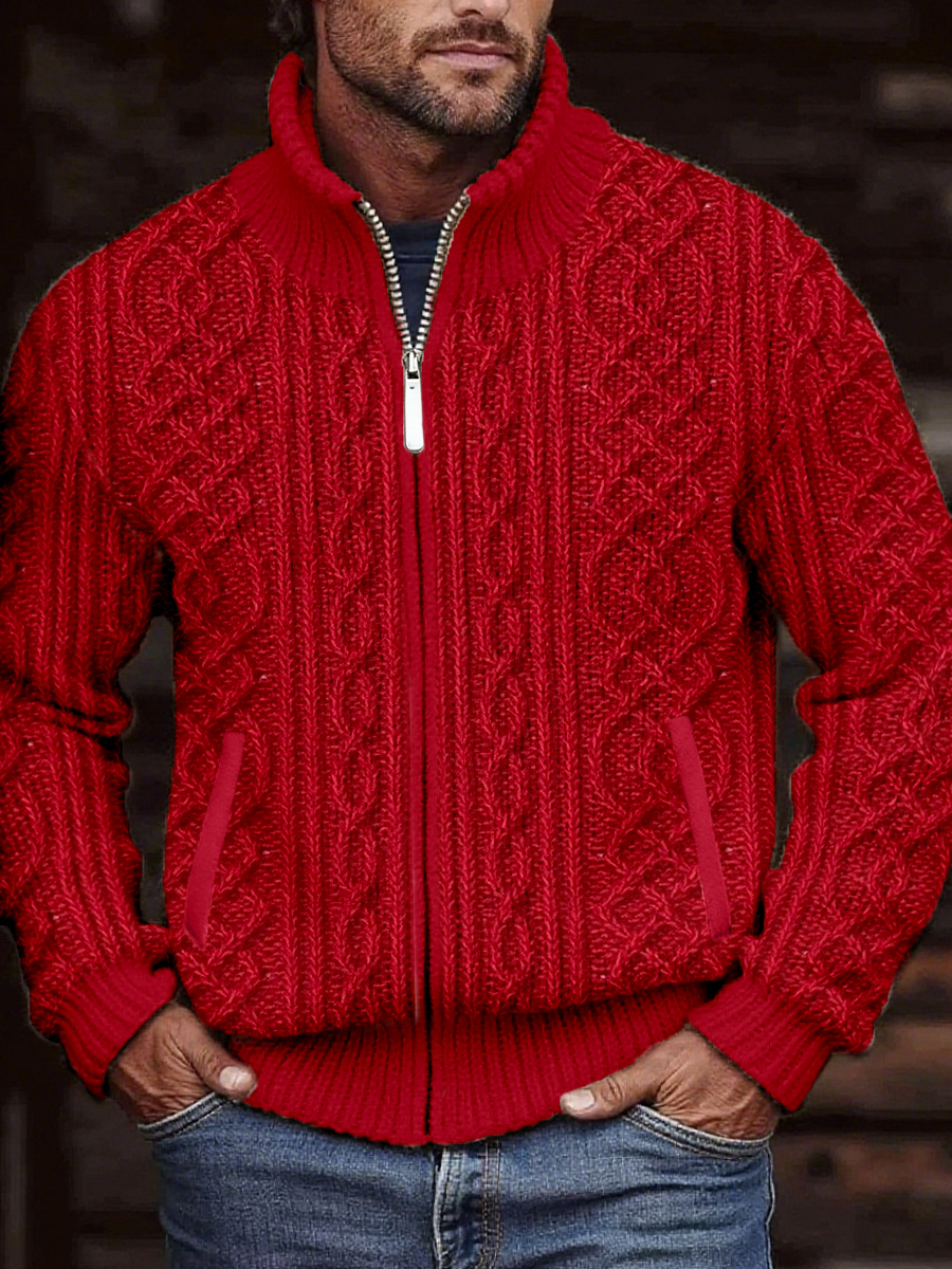 Men's Vintage Cable Texture Cozy Knit Cardigan