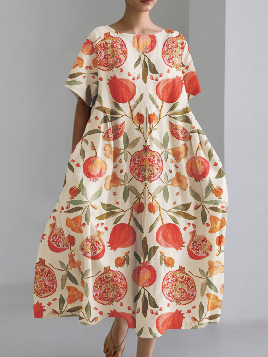 Women's Fruit Art Print Short Sleeve Pocket Dress
