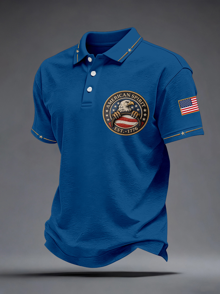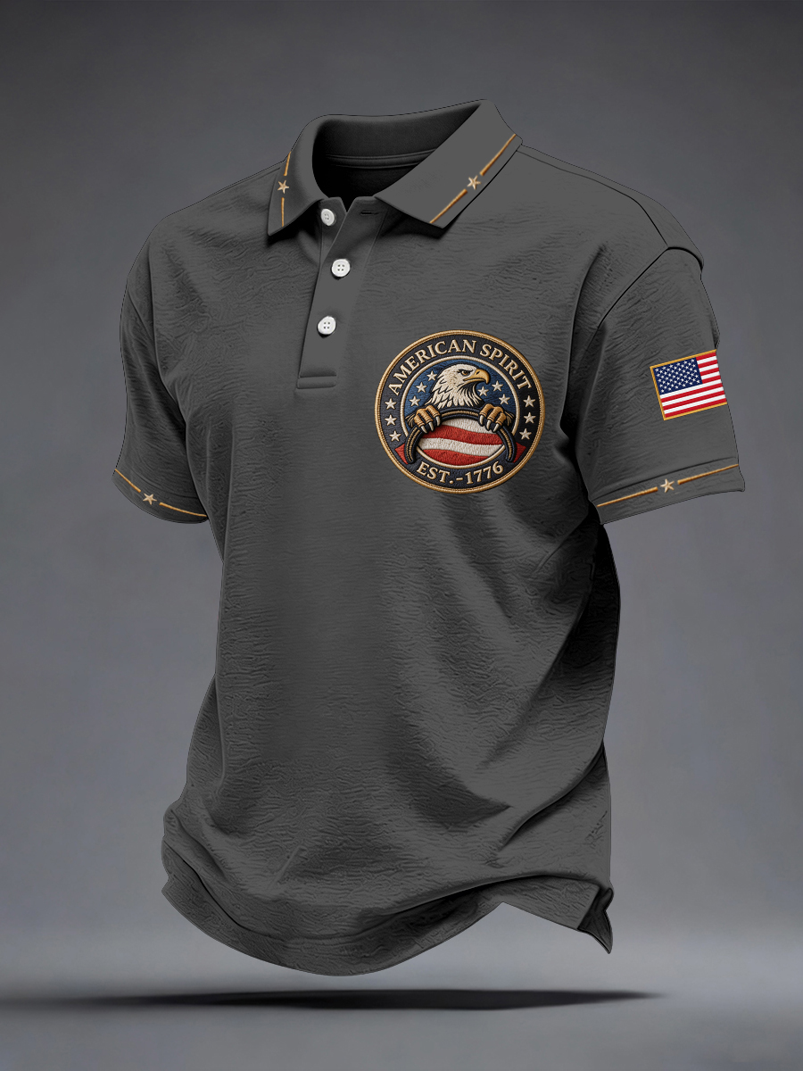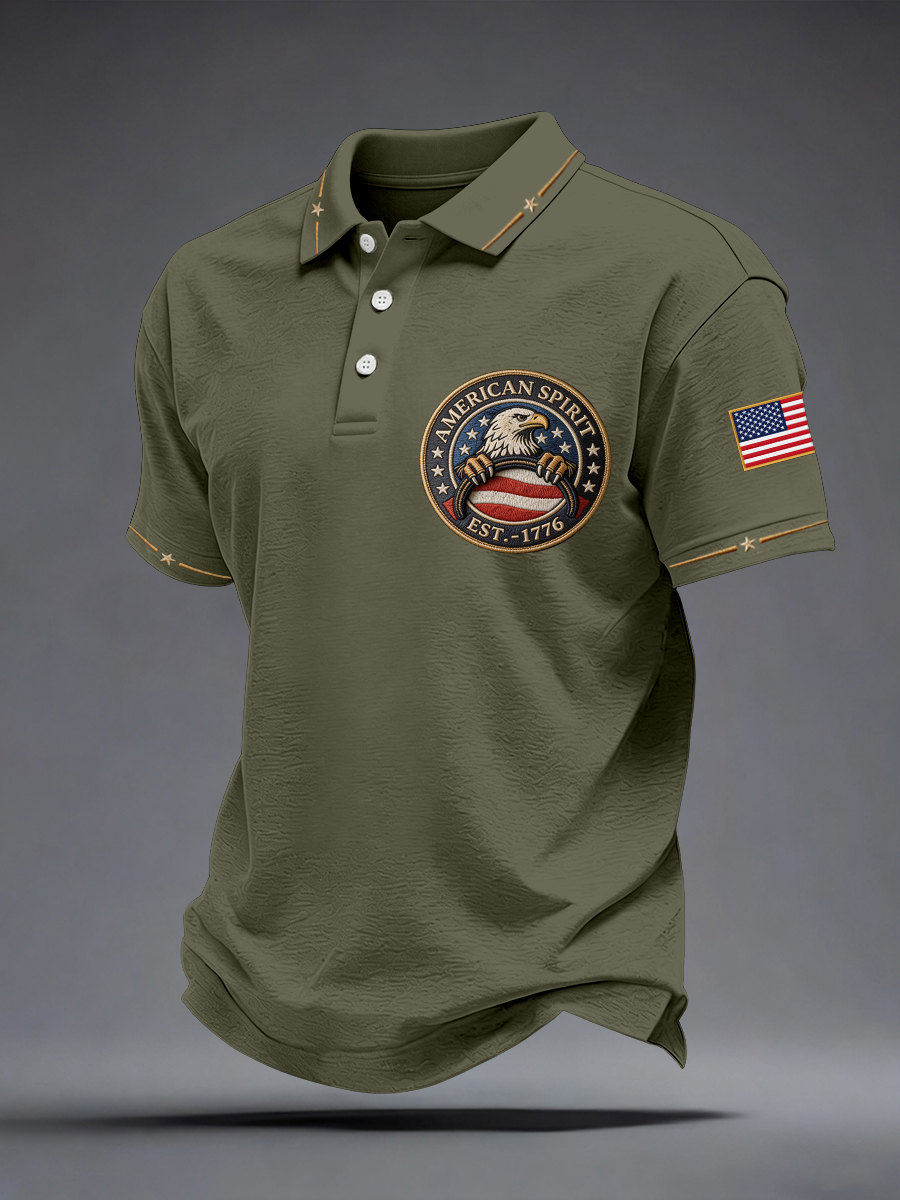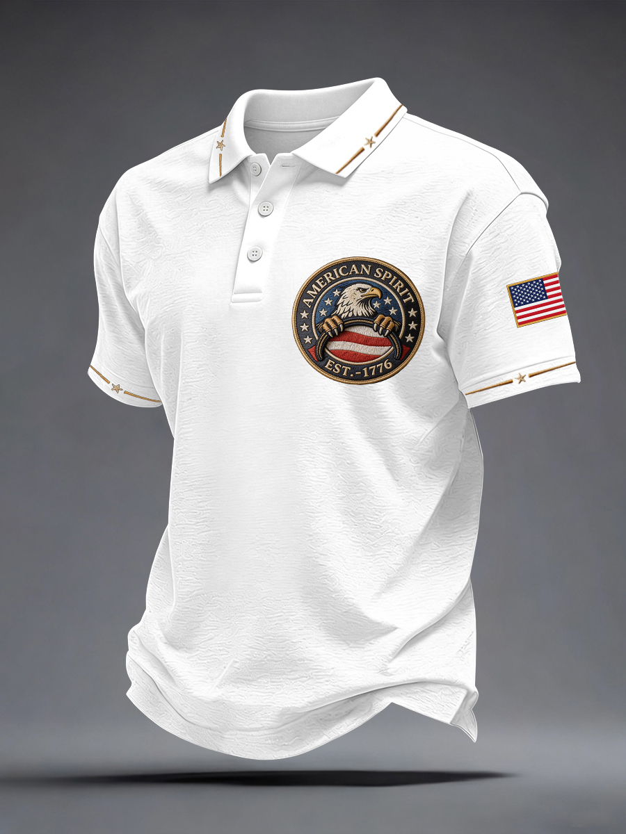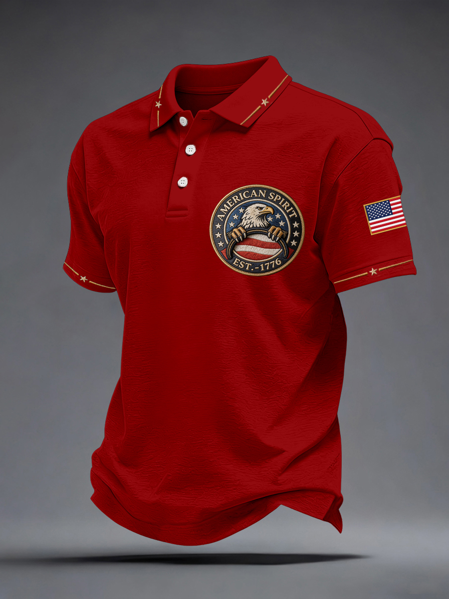 Men's American Spirit Embroidered Pattern Polo Shirt