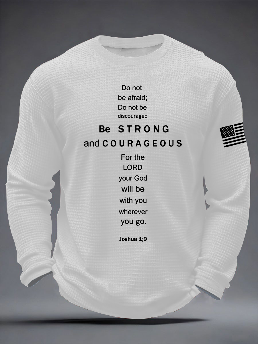 Men's Christian Be Strong and Courageous Cross Waffle Long Sleeve T-Shirt