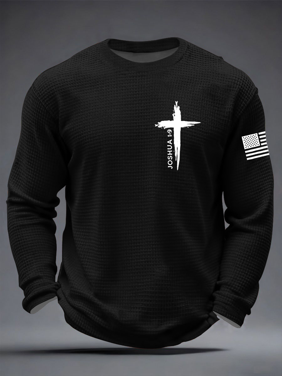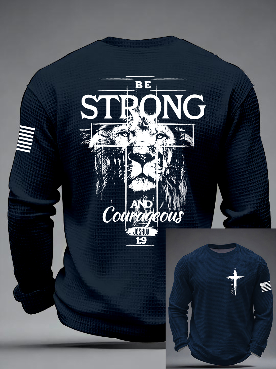 Men's Christian Cross Be strong and courageous sign Joshua 1:9 Waffle Long Sleeve T-Shirt
