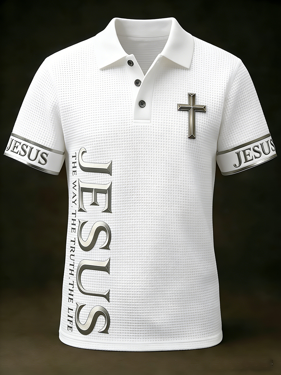 Men's Christian Jesus The Way The Truth The Life Cross Print Casual waffle Short Sleeve Top