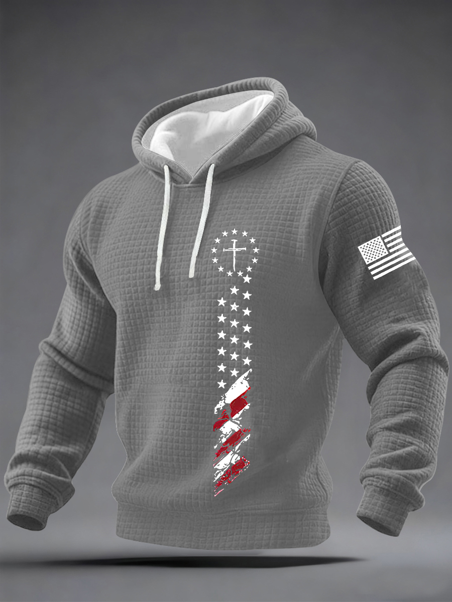 Men's Faith Cross Flag Checkered Cotton Hoodie