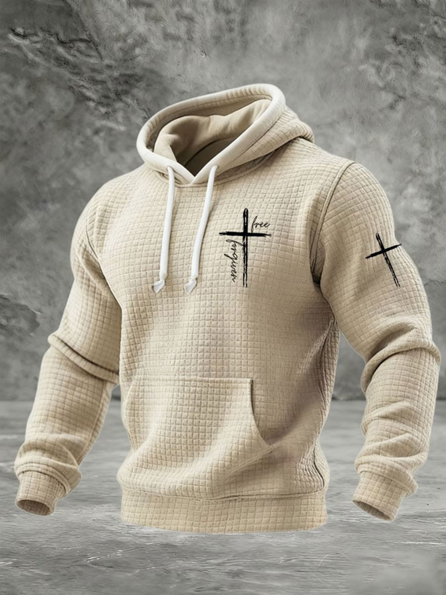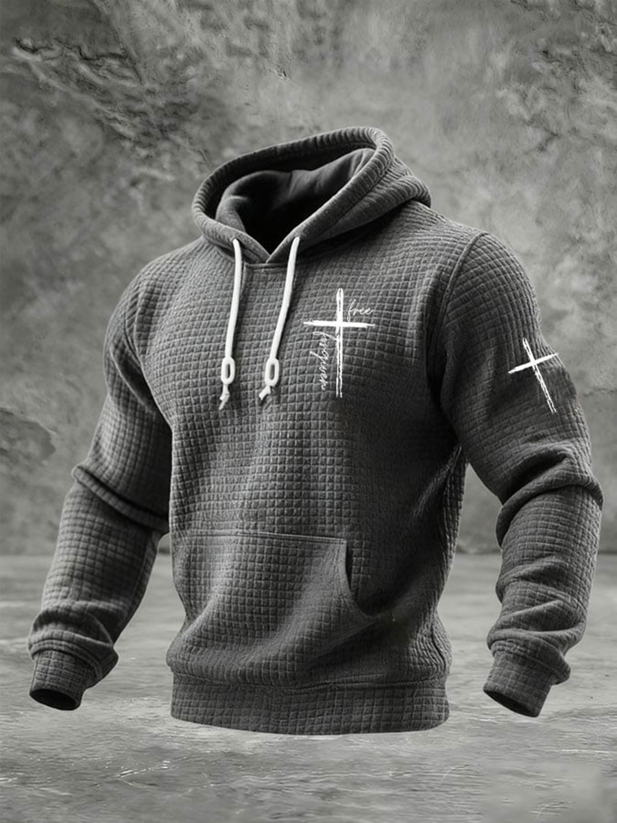 Men's Faith Cross Waffle Print Hoodie