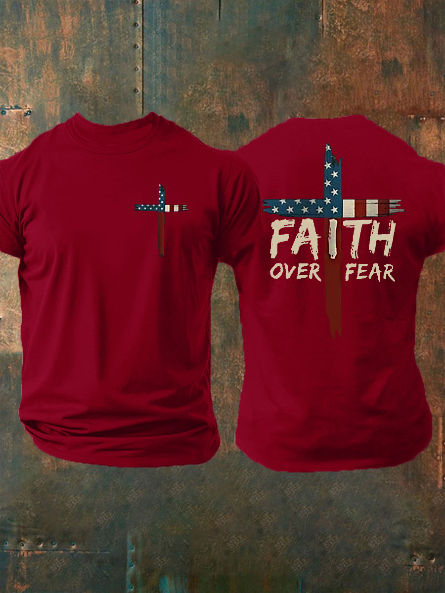 Men's Faith Over Fear Print Casual Short Sleeve T-Shirt