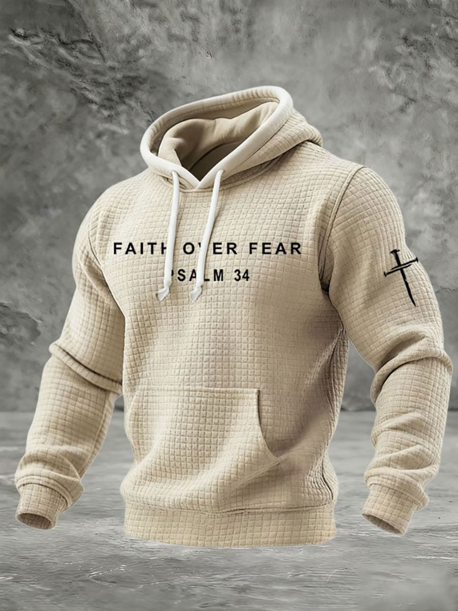 Men's Faith Over Fear Waffle Print Hoodie