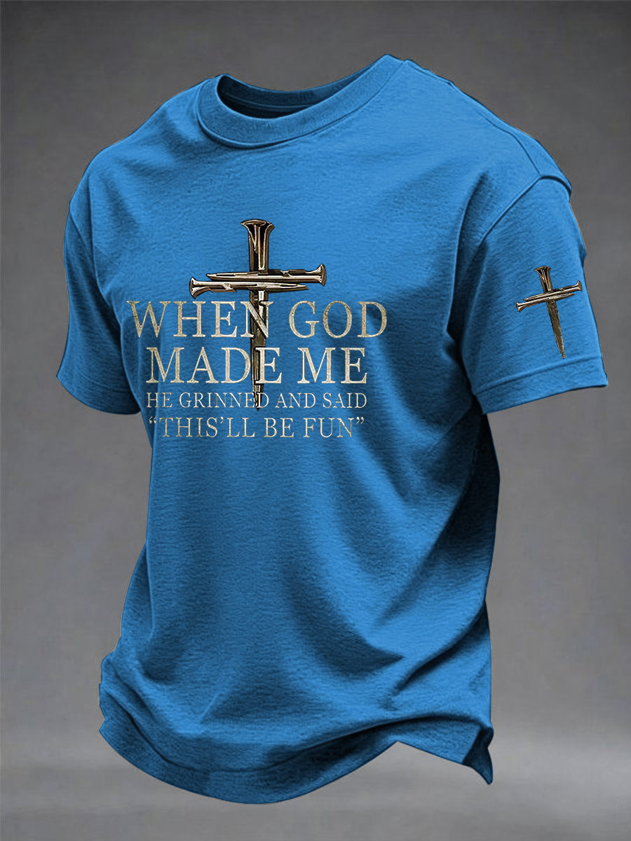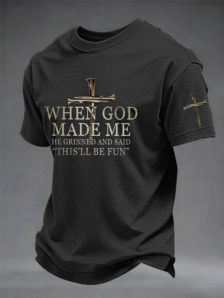 Men's Funny Christian When God Made Me He Grinned And Said This'll Be Fun Short Sleeve T-shirt