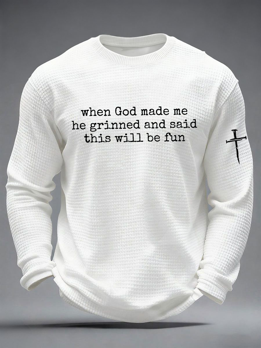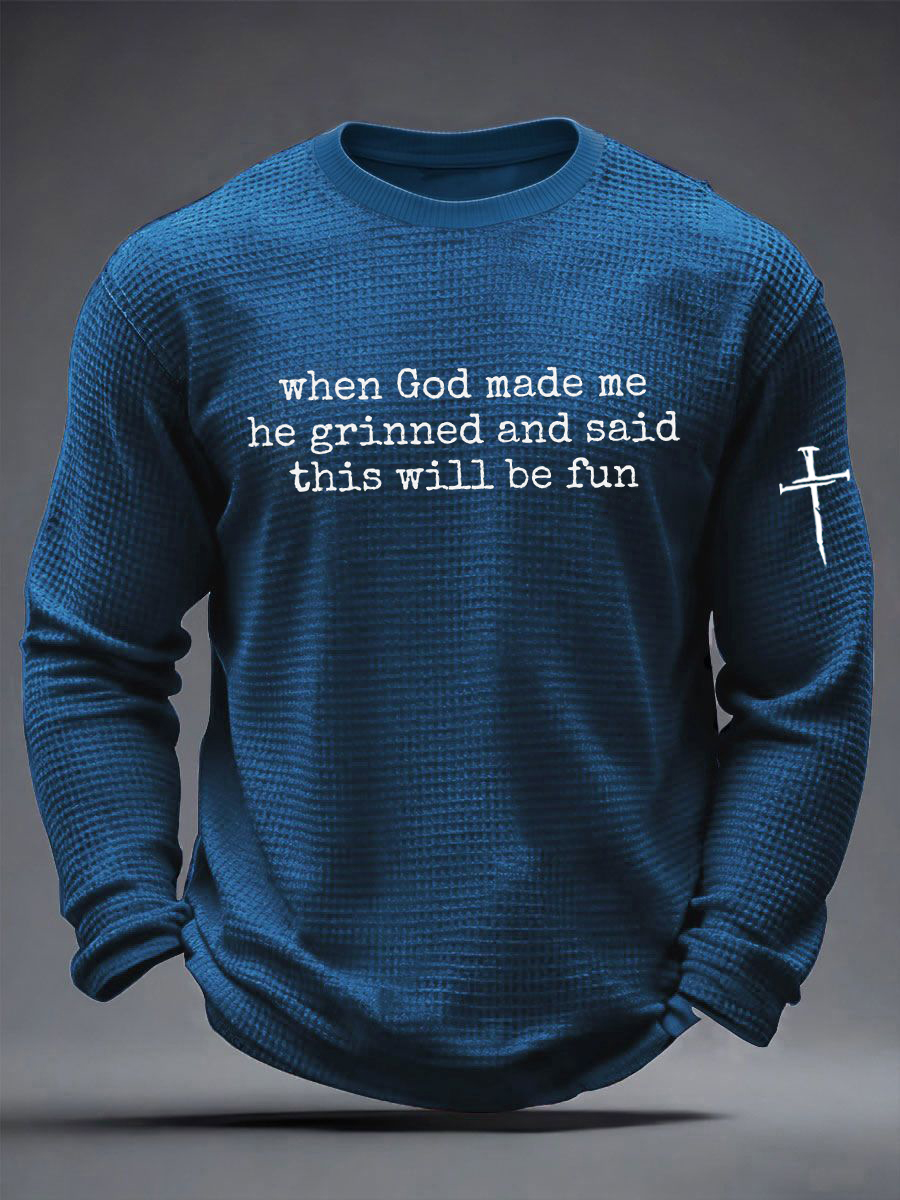 Men's Funny Christian When God Made Me He Grinned And Said This'll Be Fun Waffle Long Sleeve T-Shirt