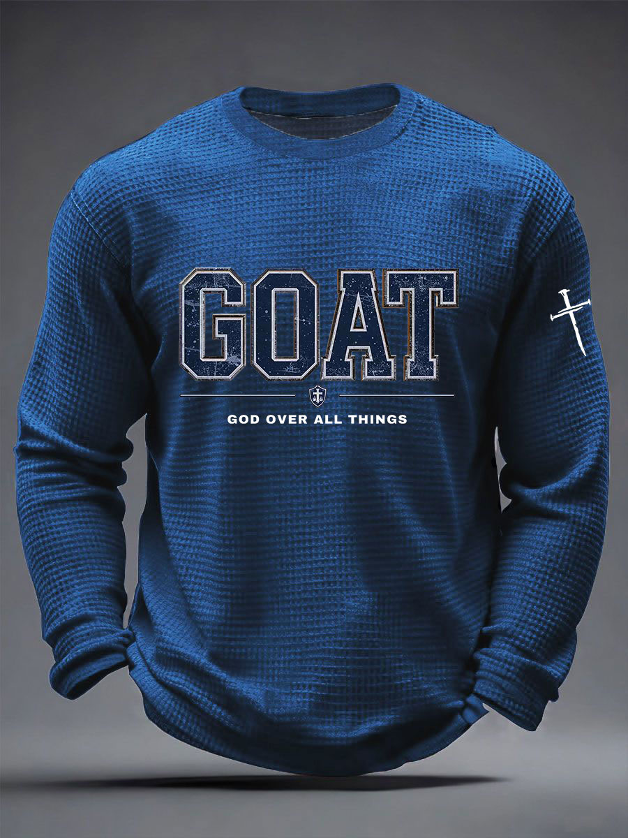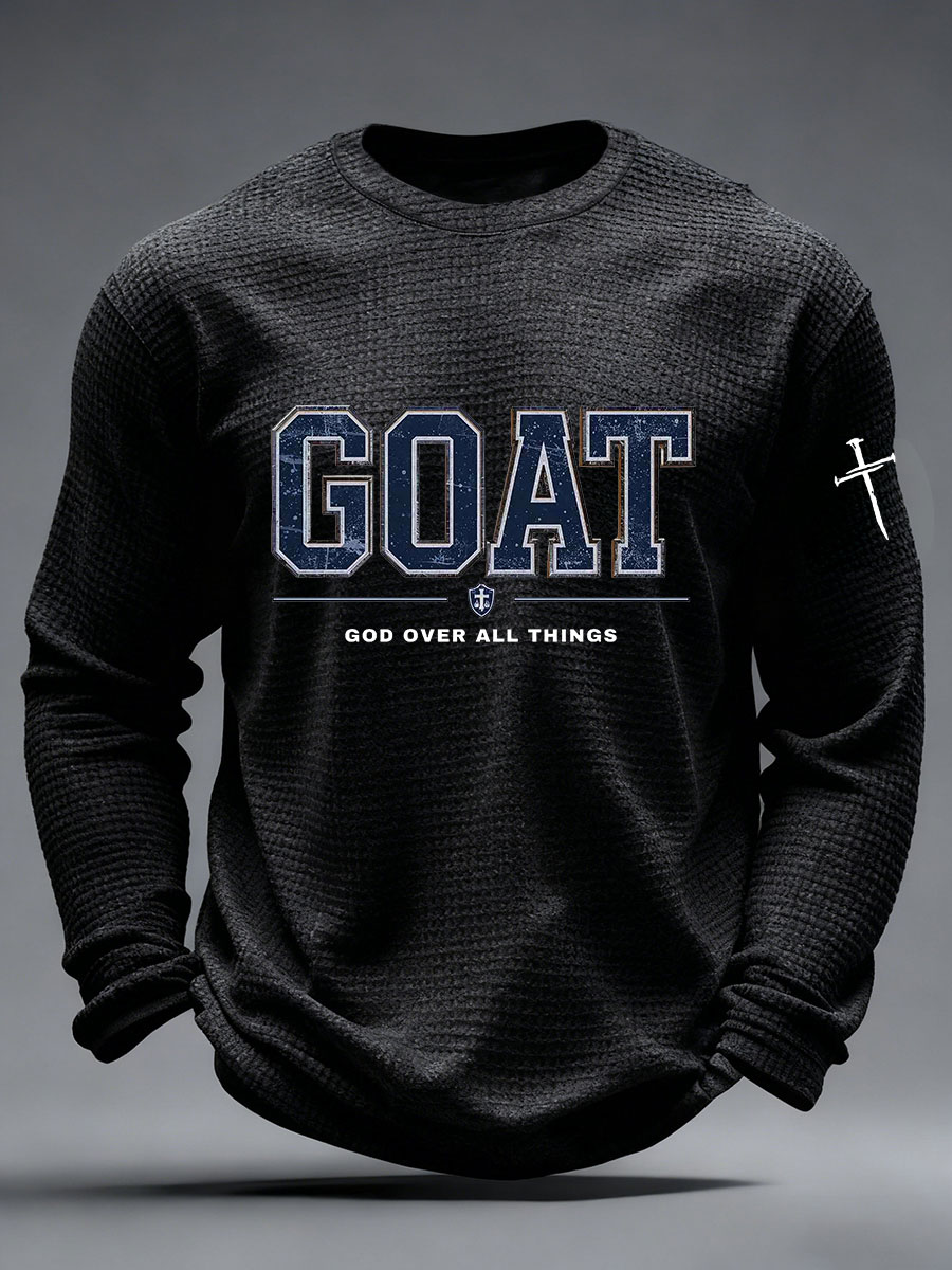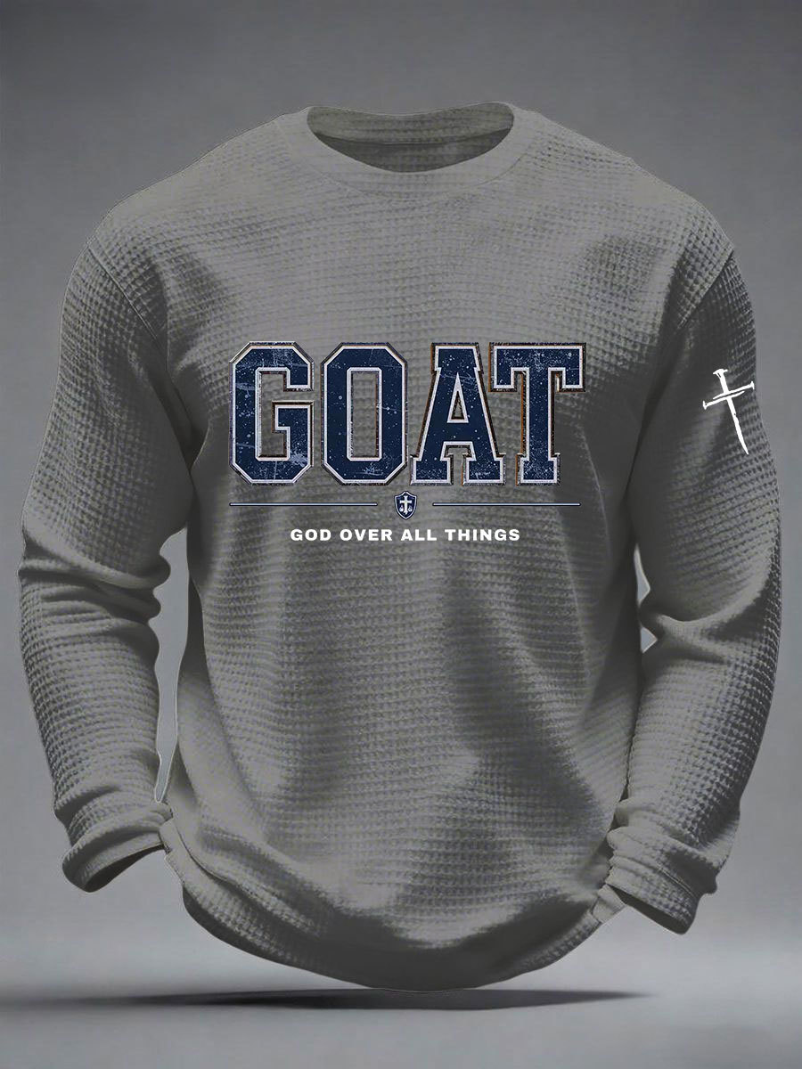 Men's GOAT God Over All Things Waffle Print Casual T-Shirt