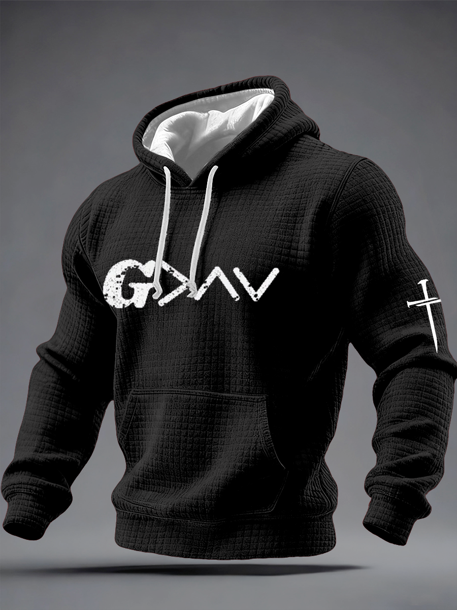 Men's God Is Greater Than The Highs and Lows Checkered Cotton Hoodie