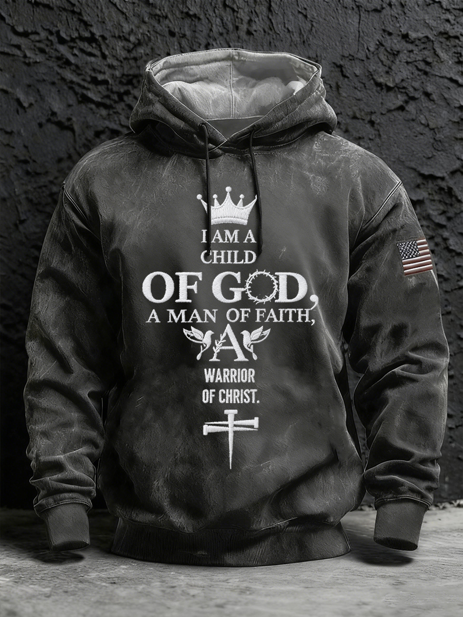 Men's I Am A Child Of God A Man Of Faith Drop-Shoulder Hoodie (No Pockets)