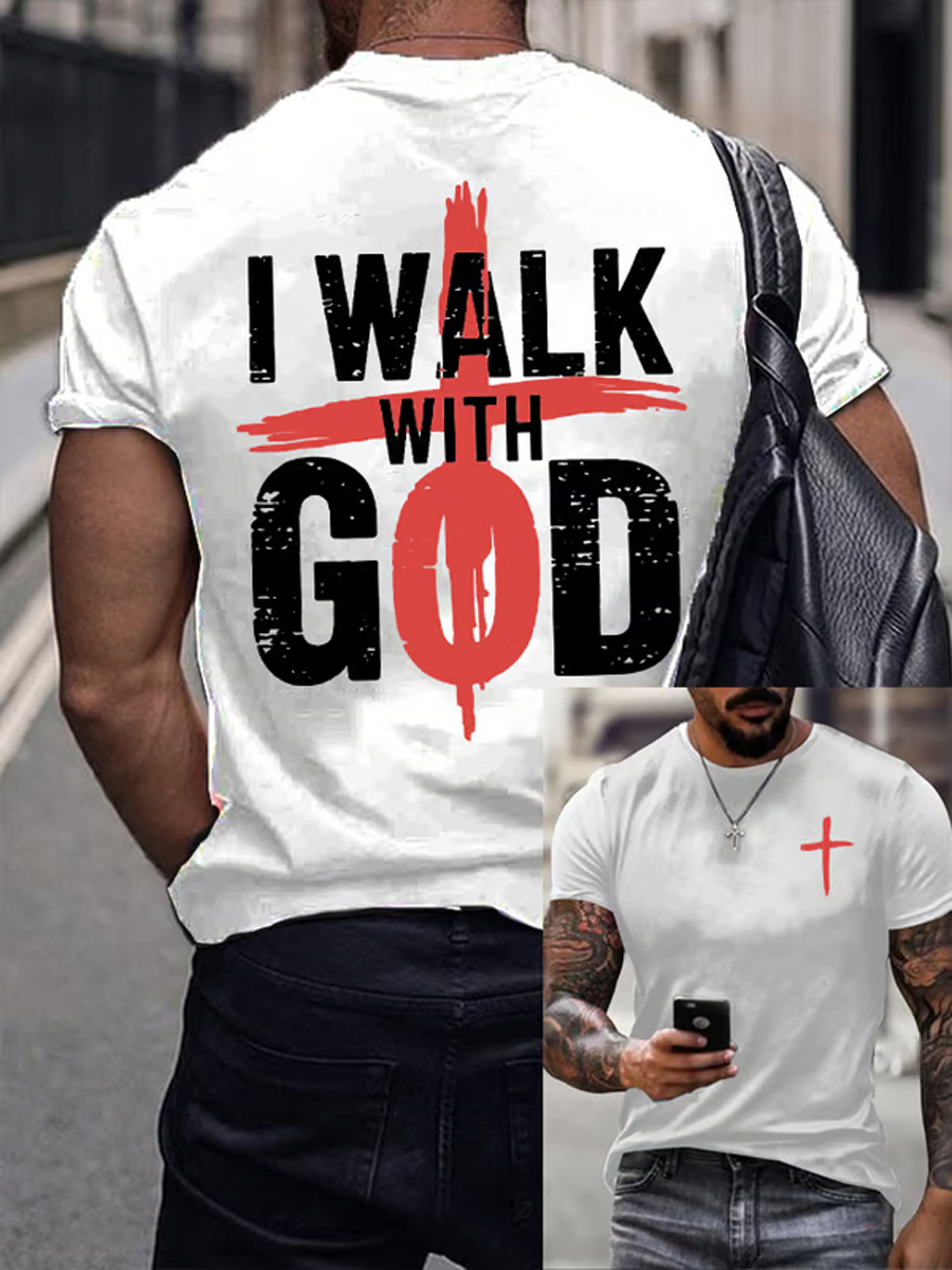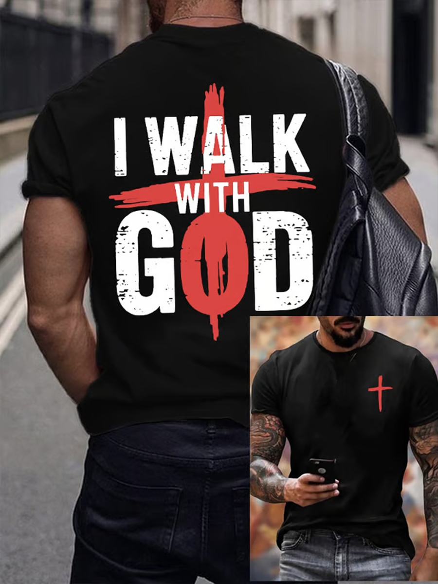 Men's I Walk With God Faith Printed imitation cotton short-sleeved T-shirt