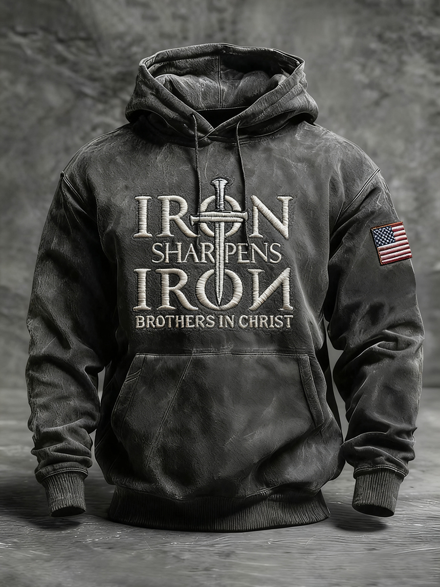 Men's IRON SHARPENS Cross Oversized Drop-Shoulder Hoodie with Pockets