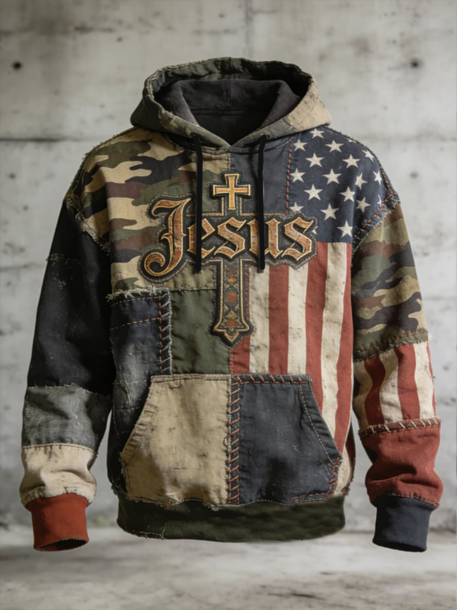 Men's Jesus Flag Camouflage Oversized Drop-Shoulder Hoodie With Pockets