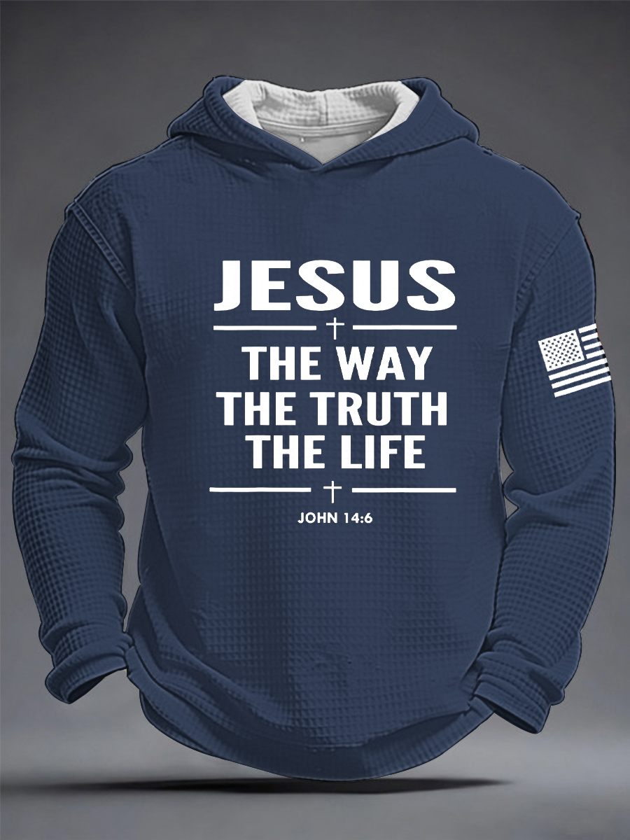 Men's Jesus The Way The Truth The Life Cross Waffle Hooded Sweatshirt