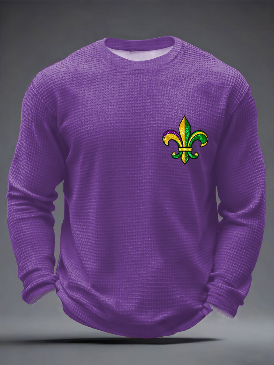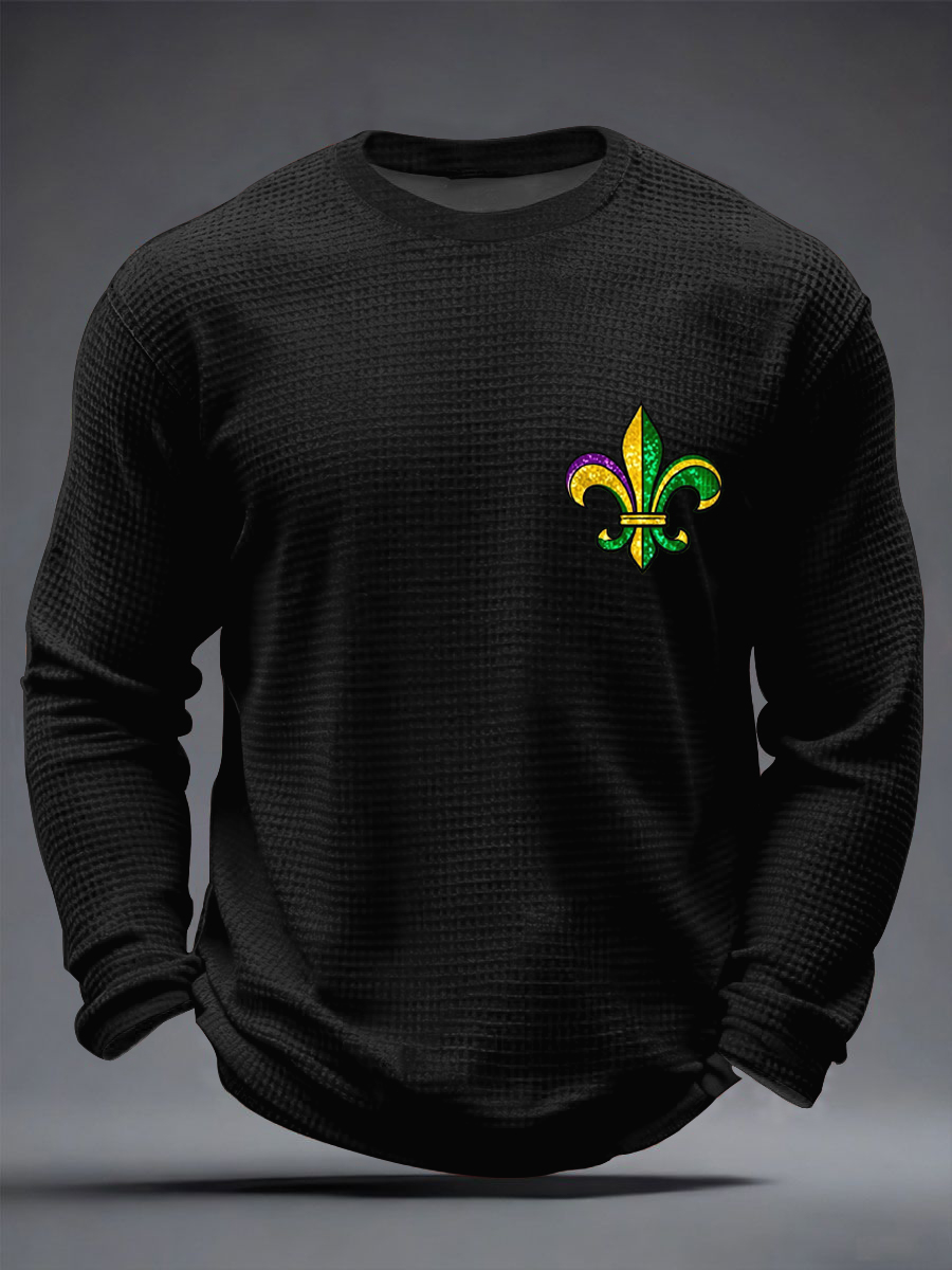 Men's Mardi Gras Fleur De Lis Colorblock Print Casual Waffle Long Sleeve T-Shirt