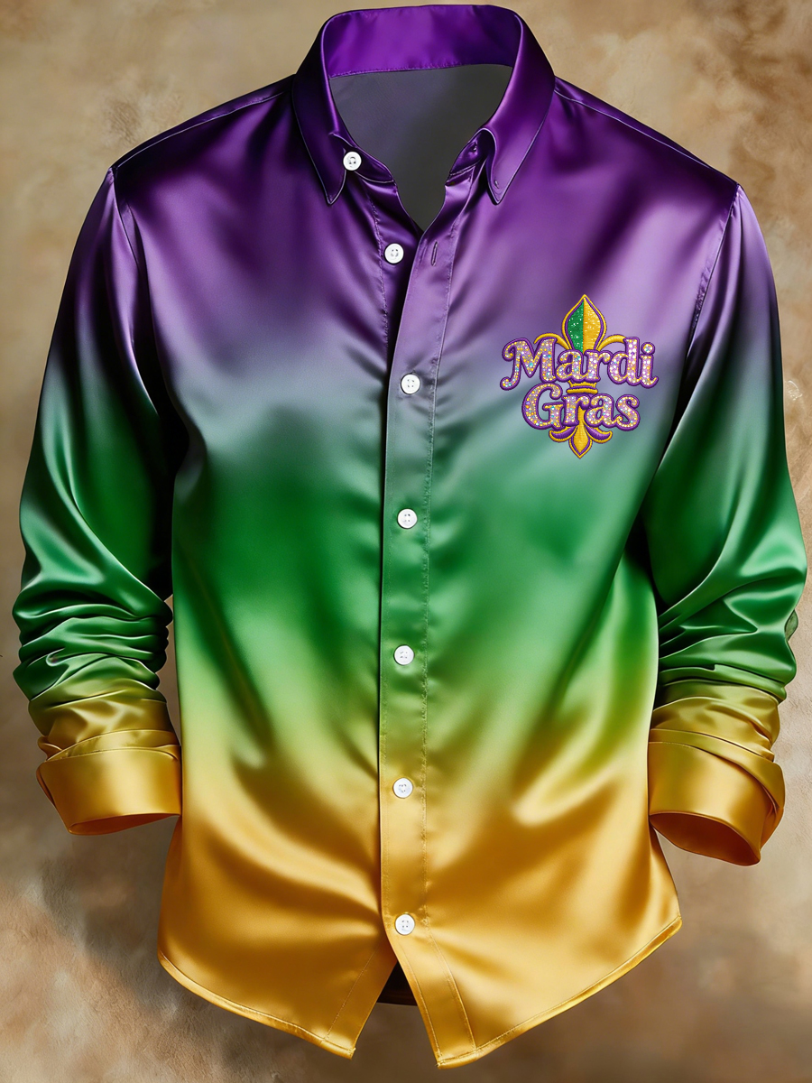 Men's Mardi Gras Fleur De Lis Gradient Print Casual Shirt