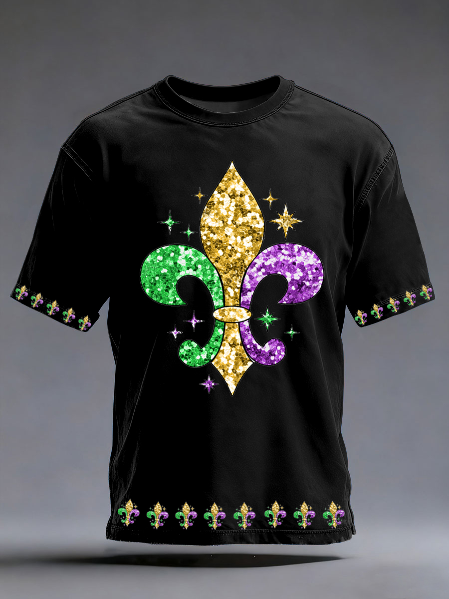 Men's Mardi Gras Fleur De Lis Print Casual Tee