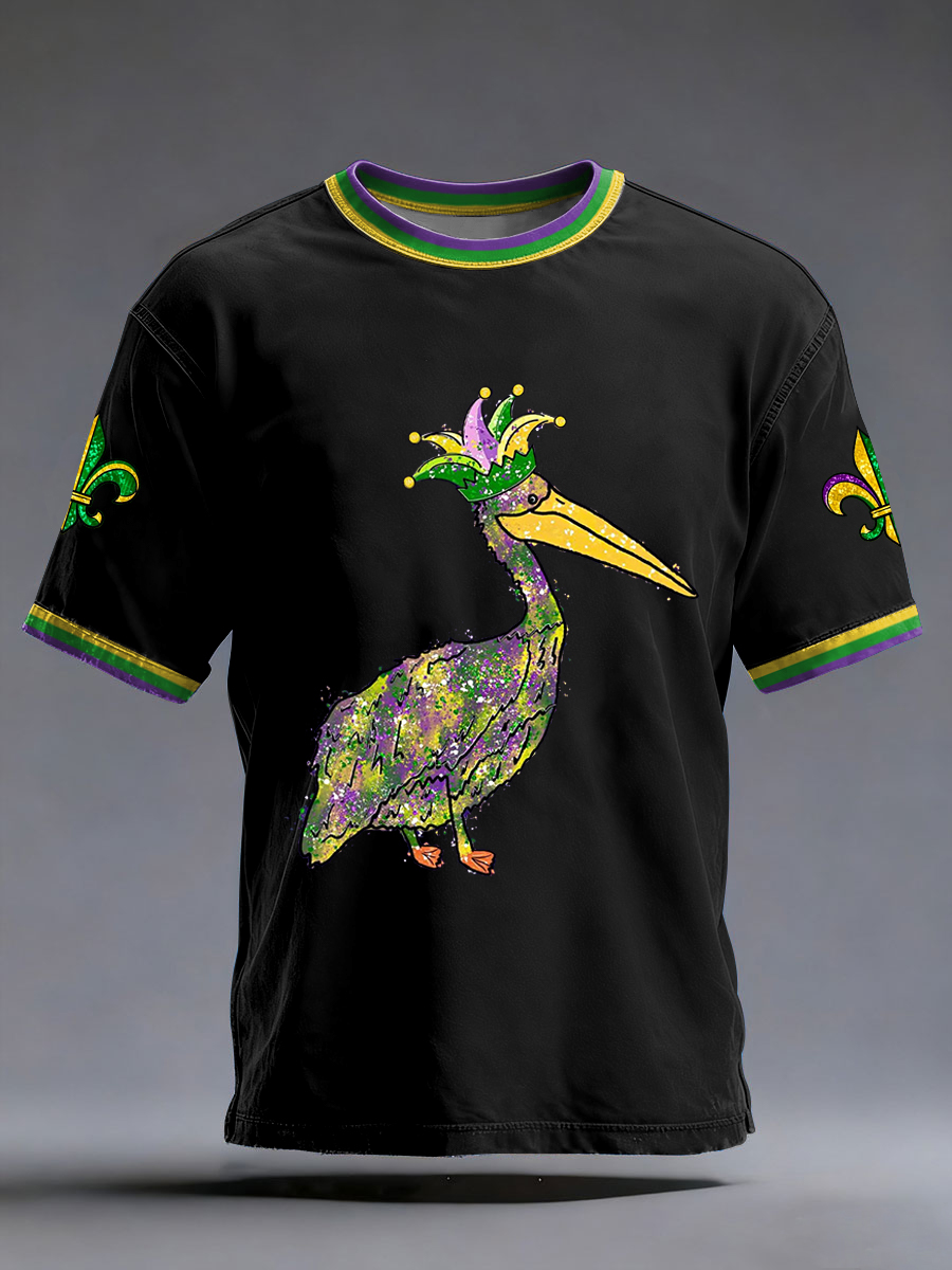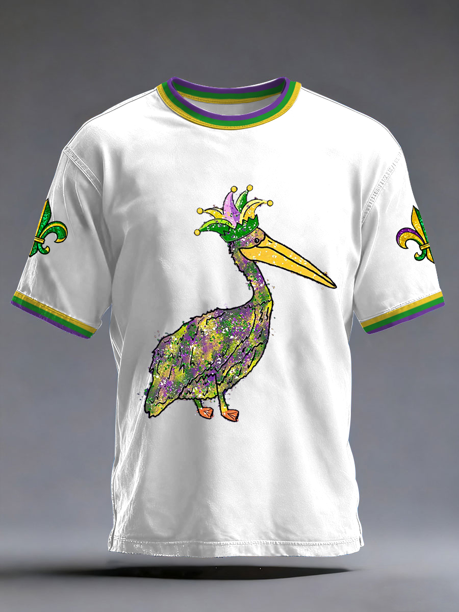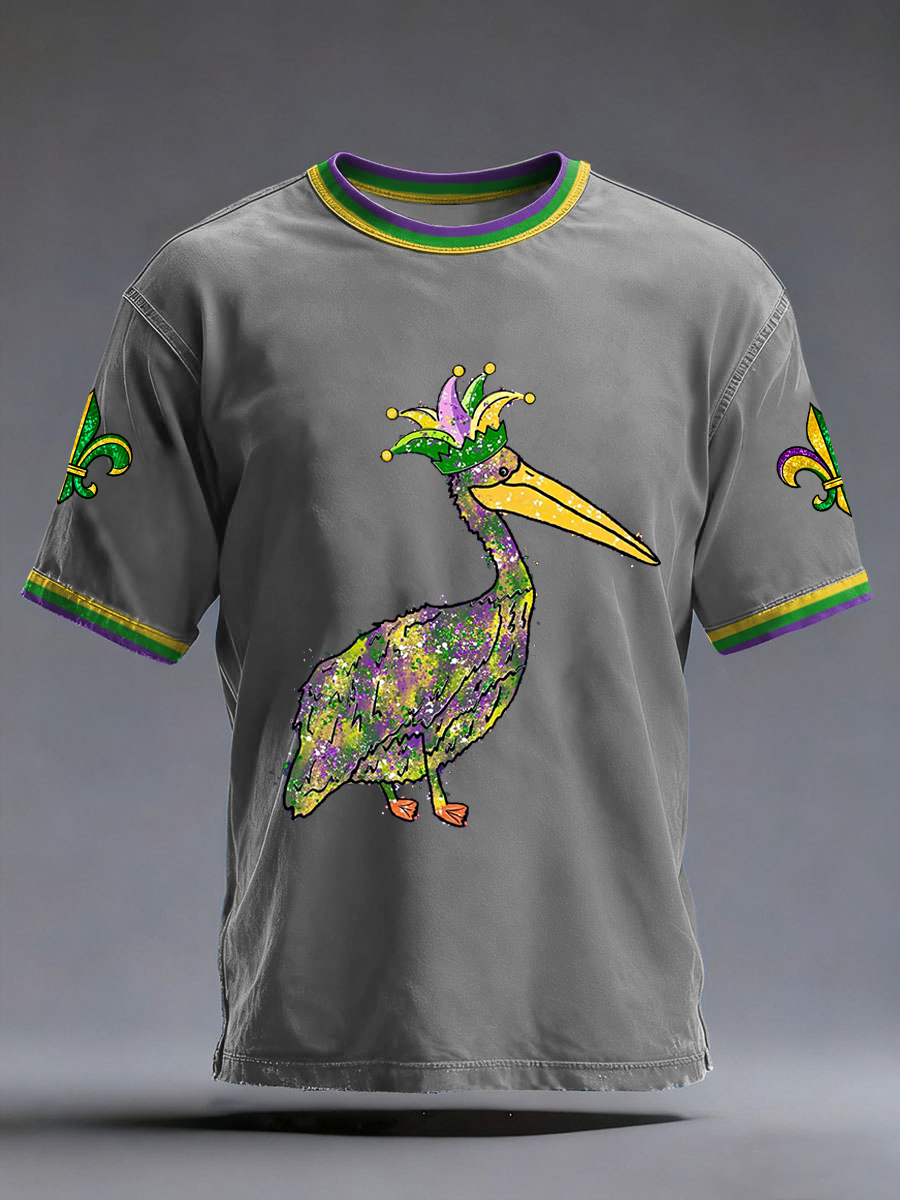 Men's Mardi Gras Pelican Fleur De Lis Print Casual Tee