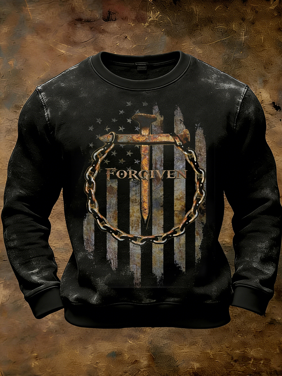 Men's Retro Forgiven Nail Cross USA Flag Print Casual Sweatshirt