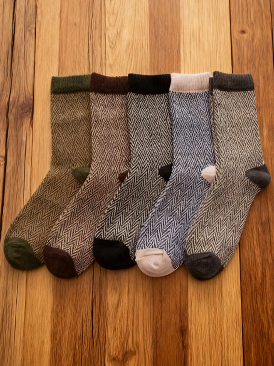 Men's Soft and Warm Retro Rainbow Contrast Socks (5 Pairs)