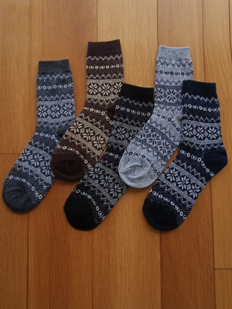 Men's Soft and Warm Retro Rainbow Contrast Socks (5 Pairs)