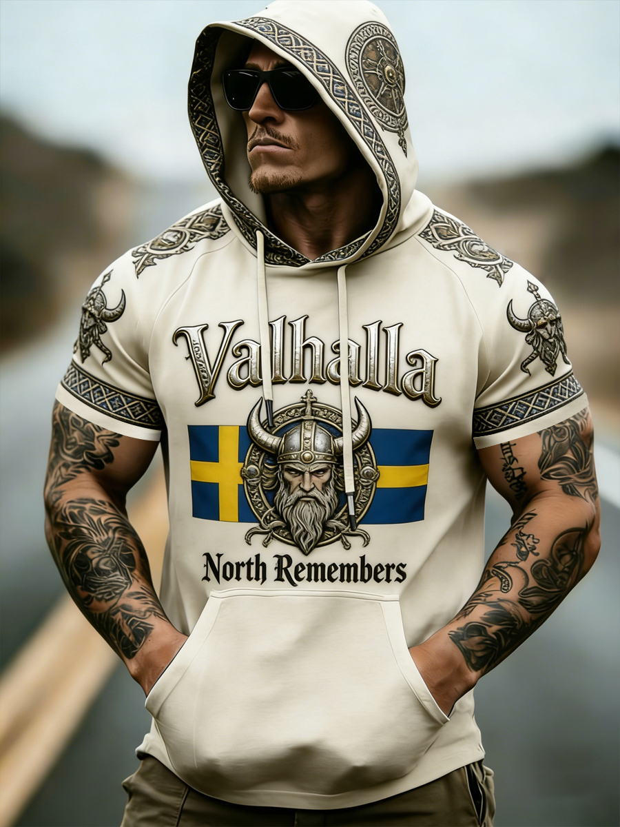 Men's Swedish Viking-style Short Sleeves Hooded Top