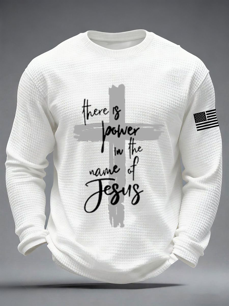 Men's There is Power in The Name of Jesus Faith Cross Waffle Long Sleeve T-Shirt