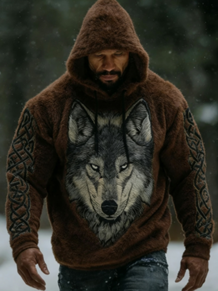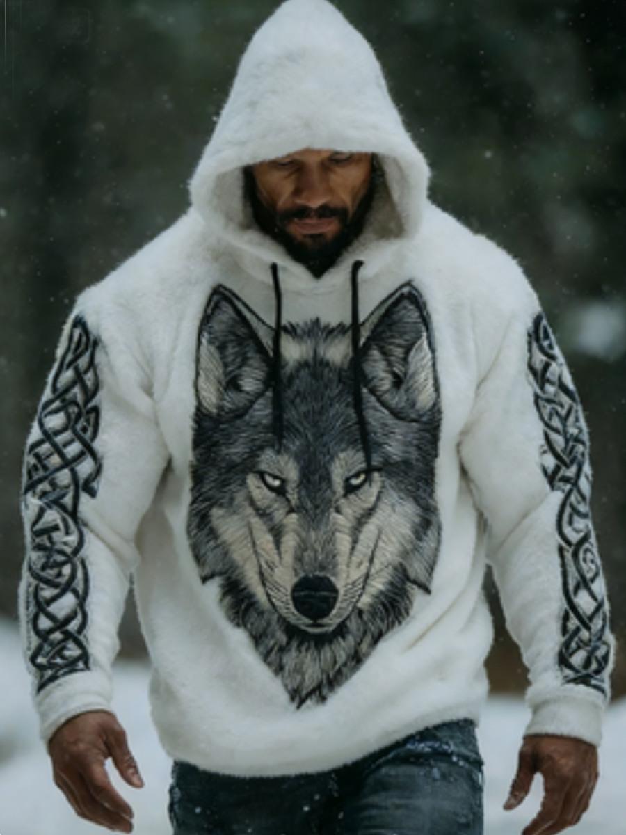 Men's Viking Vintage Wolf Celtic Flannel Warm Hoodie