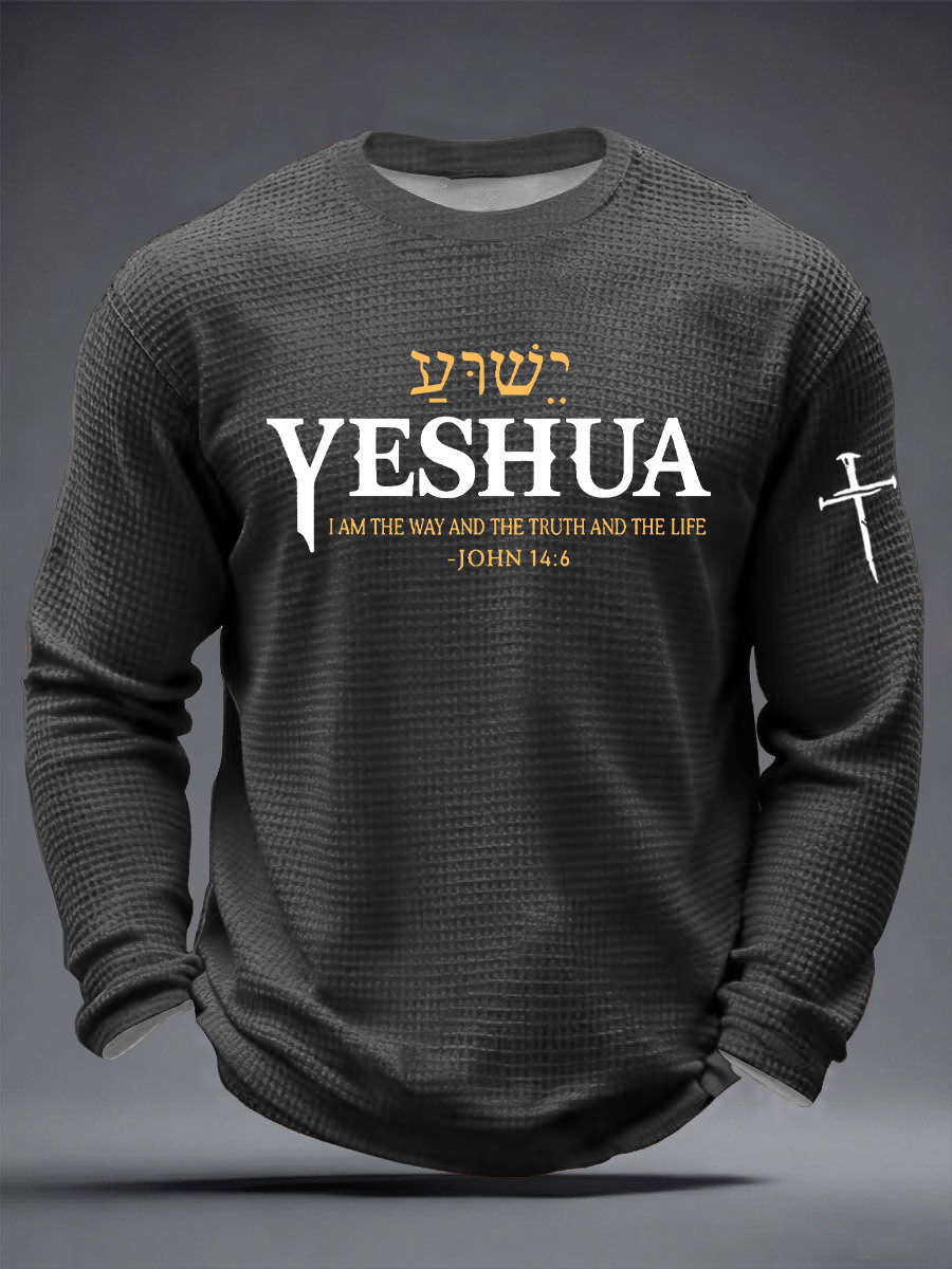 Men's Yeshua Christian The Way The Truth & The Life John 14:6 Cross Waffle Long Sleeve T-Shirt