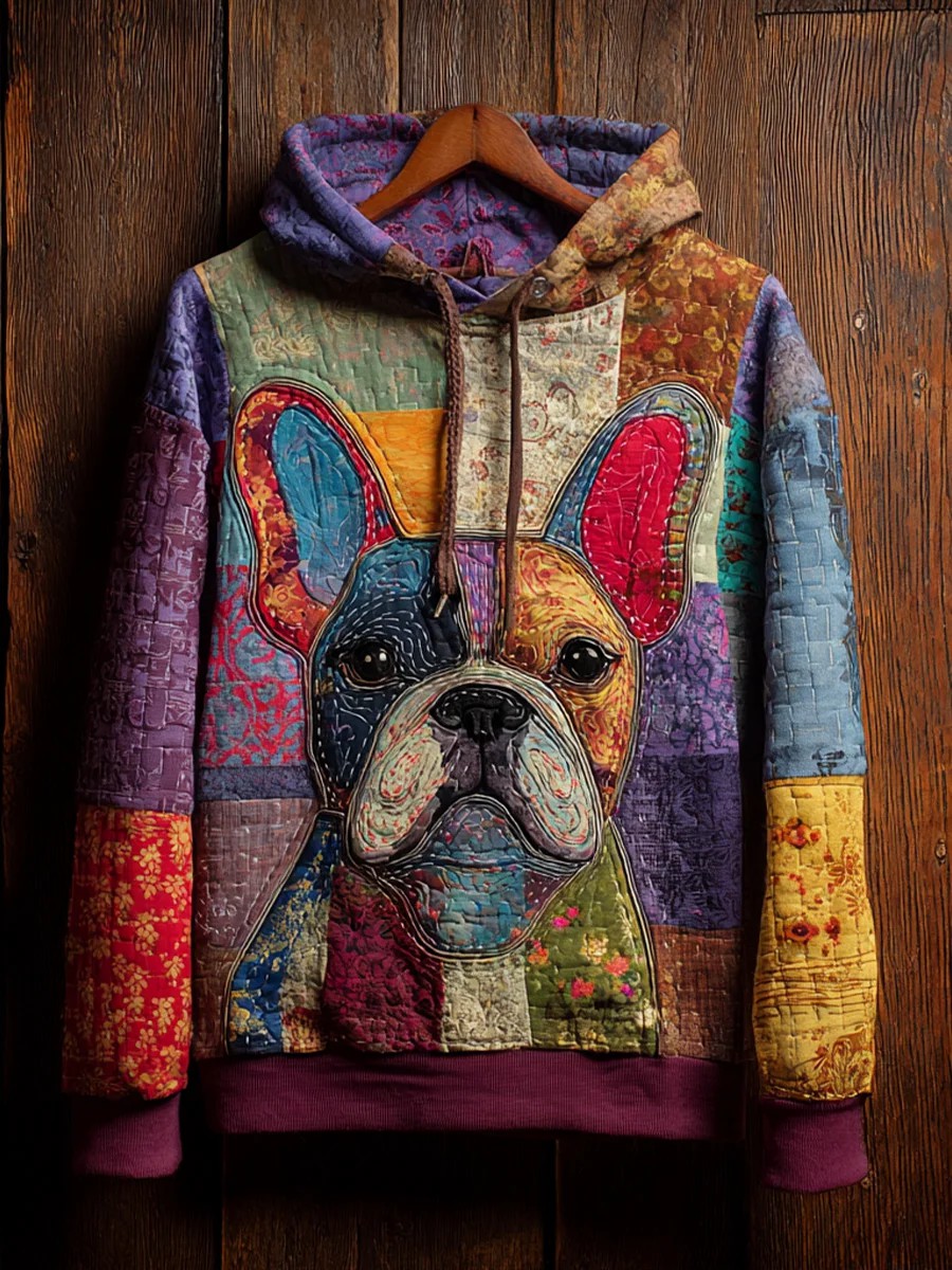 Vintage Patchwork Dog Print Art Casual Hoodie