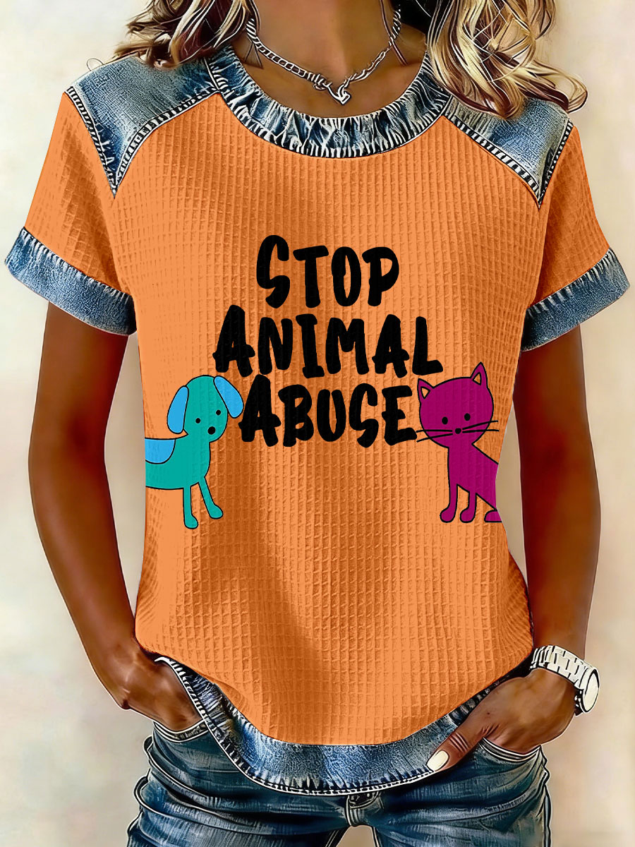 Women's 'Stop Animal Abuse' Waffle Knit T-Shirts