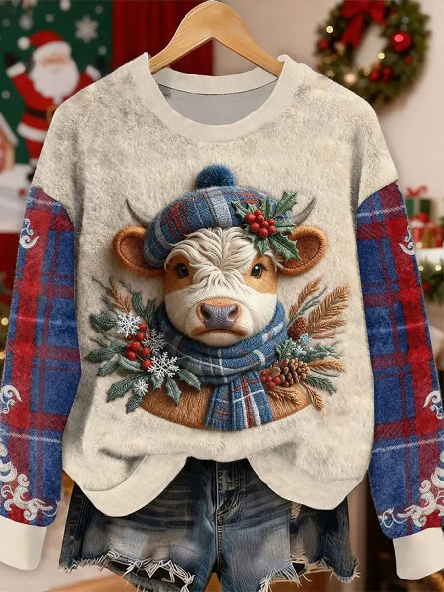 Women's Animal Highland Cow Print Flannel Hoodie